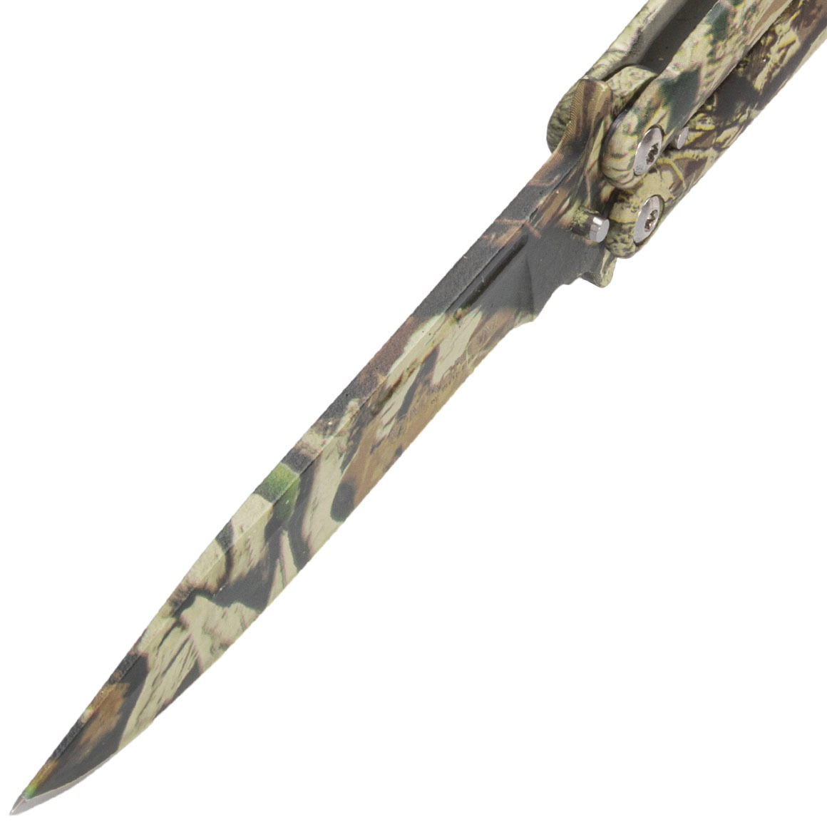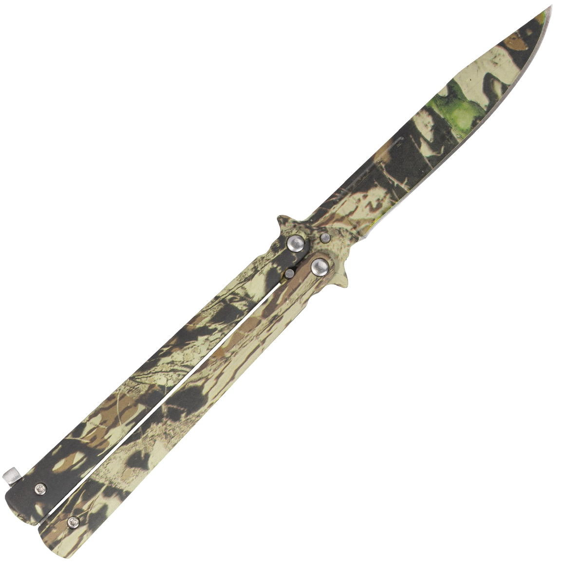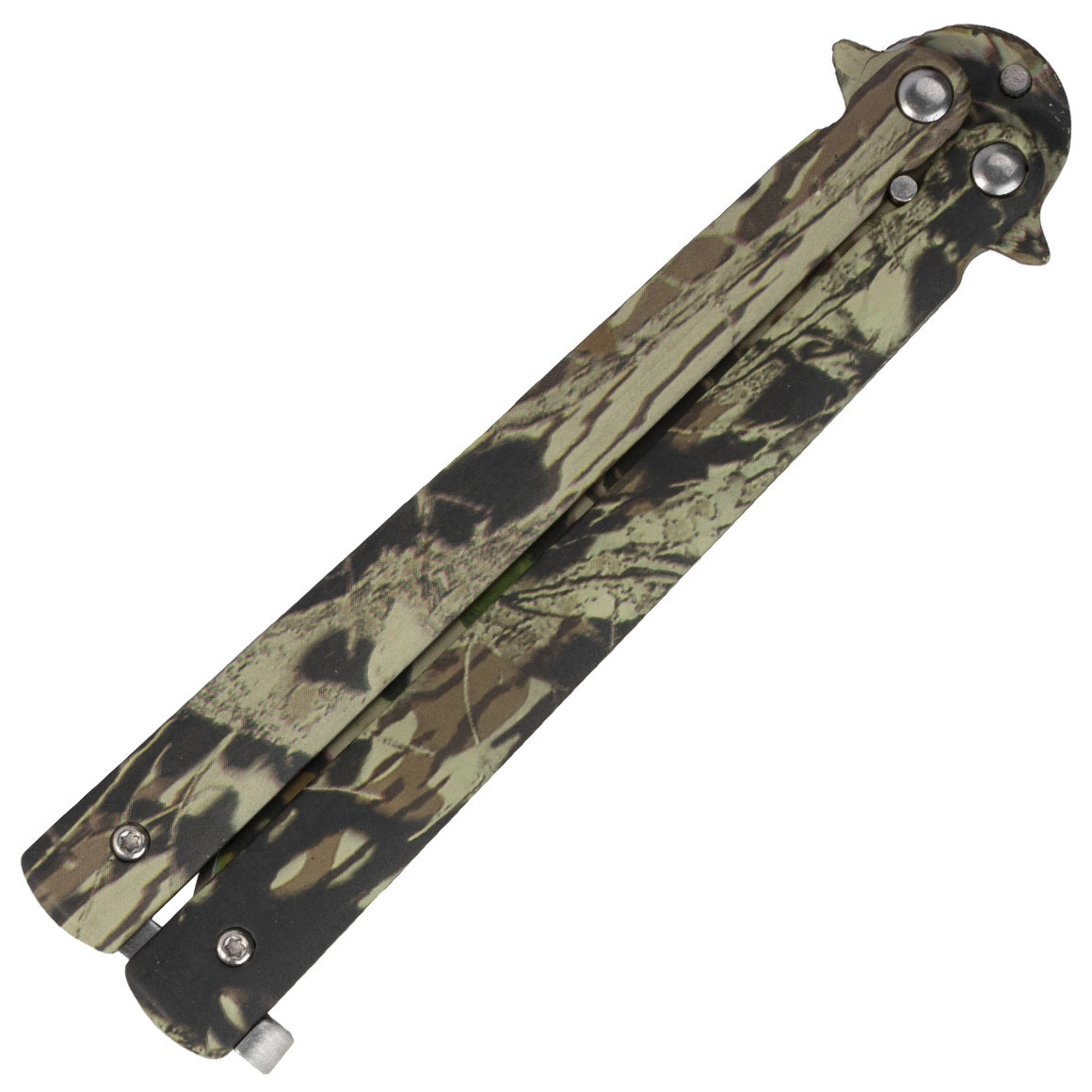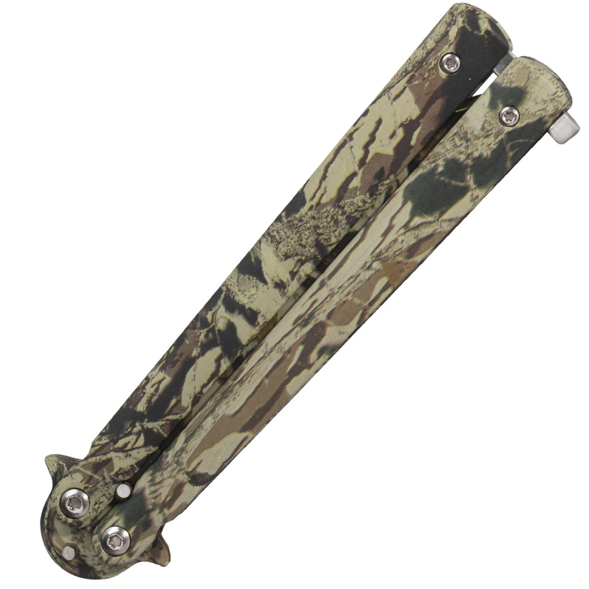 Butterflykniven MAGNUM Balisong Camo kombinerer et attraktivt camo-design med en funktionel konstruktion. De to skæfter roterer 180°, hvilket sikrer hurtig og jævn håndtering. Fuld fladedækkende camouflage på både klinge og håndtag understreger det robuste og diskrete udseende.
