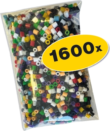 1.600 stk. strygeperler, sekskantet plade med pigge, strygepapir, ark med klistermærker, vejledning