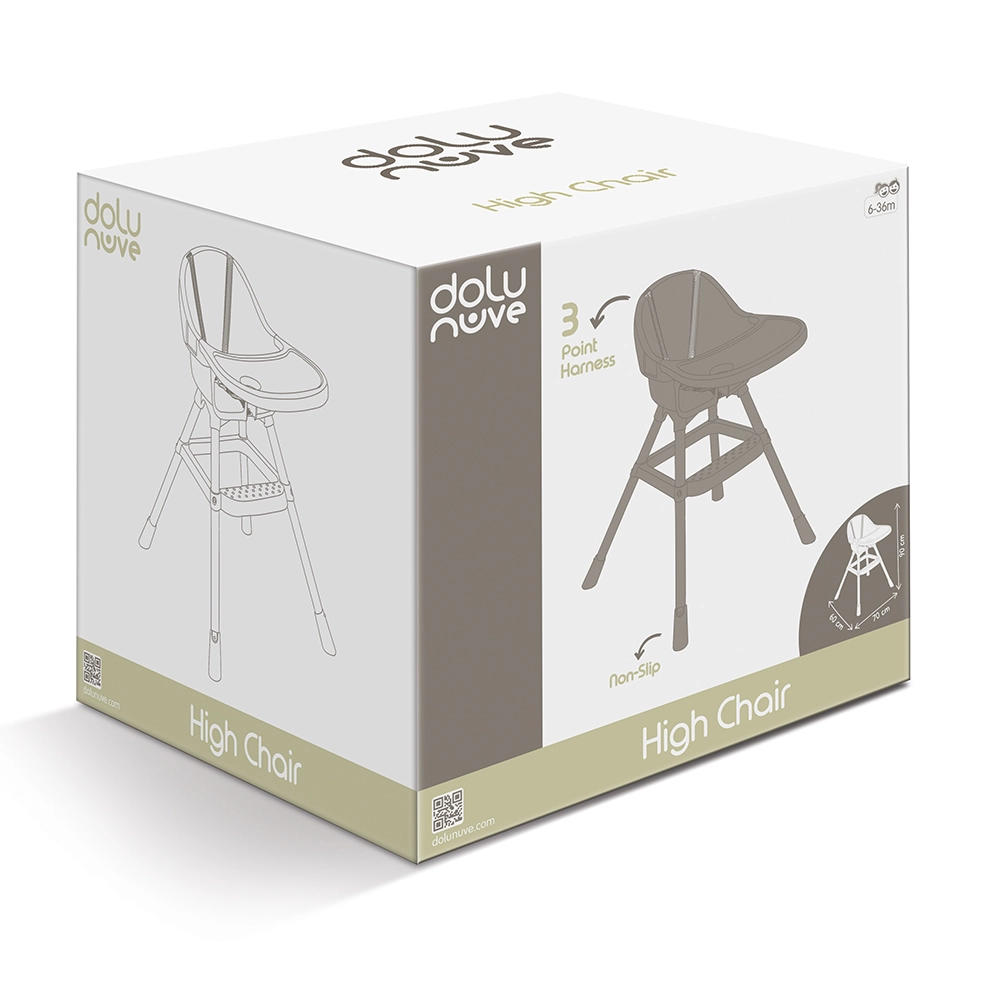 Stolen er designet til børn fra 6 til 36 måneder, og takket være de kompakte mål 90 × 60 × 70 cm passer den i de fleste hjem. Det minimalistiske design harmonerer nemt med moderne interiører.