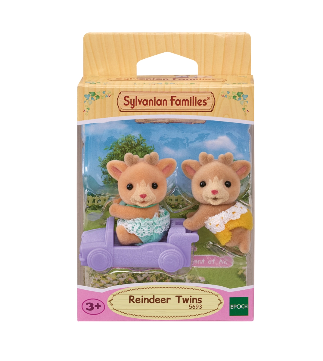 De søde rensdyrtvillinger SYLVANIAN FAMILIES med en lille bil vil glæde enhver lille historiefortæller. Figurerne Ollie og Ginger har blød fløjlsoverflade, bevægelige hoveder og aftageligt tøj med blonde. Sættet indeholder også et lilla køretøj, som kan kombineres med andre tvillingesæt. Perfekt til at udvikle fantasien, rolleleg og finmotorik. Velegnet fra 3 år.