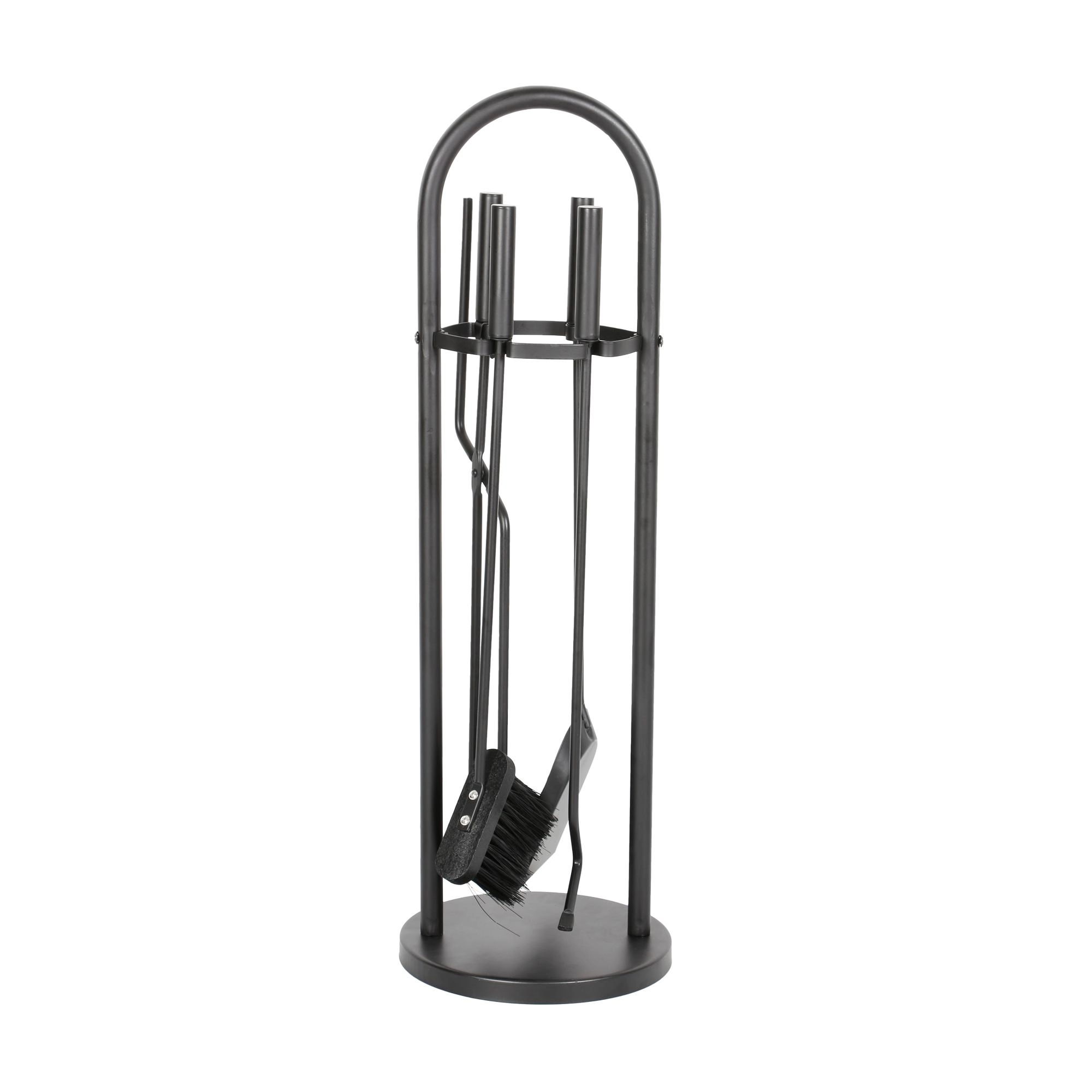 Praktisk sæt pejsetilbehør til nem og sikker vedligeholdelse af pejs eller brændeovn. Indeholder kost, skovl, tang og ildrager i ensartet design. Robust metaludførelse, universel sort farve og kompakte mål sikrer lang levetid og nem opbevaring.