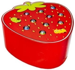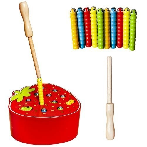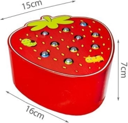 Et sjovt træspil formet som en lækker jordbær, der udvikler finmotorik og koncentration. Børn bruger en magnetisk pind til at trække orme op af hullerne og sætte dem i igen. Spillet er lavet af sikre materialer og har livlige farver, som motiverer børn til leg og læring. Et godt valg til udvikling af hånd-øje-koordination, kreativitet og tålmodighed.