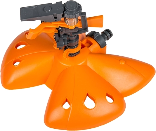Praktisk pulsator-sprinkler på en stabil sokkel formet som en sommerfugl, som sikrer jævn vanding af mellemstore arealer. Takket være rækkevidde op til 24 m dækker den effektivt en større del af haven uden hyppig flytning. Den holdbare plastkonstruktion i orange-sort tilbyder lang levetid og driftssikkerhed selv under mere krævende forhold.