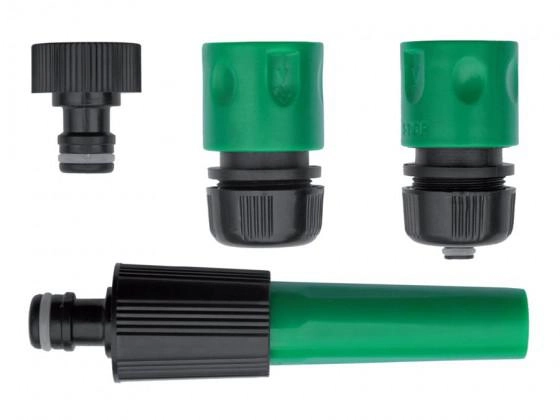 I pakken finder du komplet tilbehør – dyse, lynkoblinger og adapter – som muliggør hurtig tilslutning til vandkilden og nem regulering af vandgennemstrømningen.