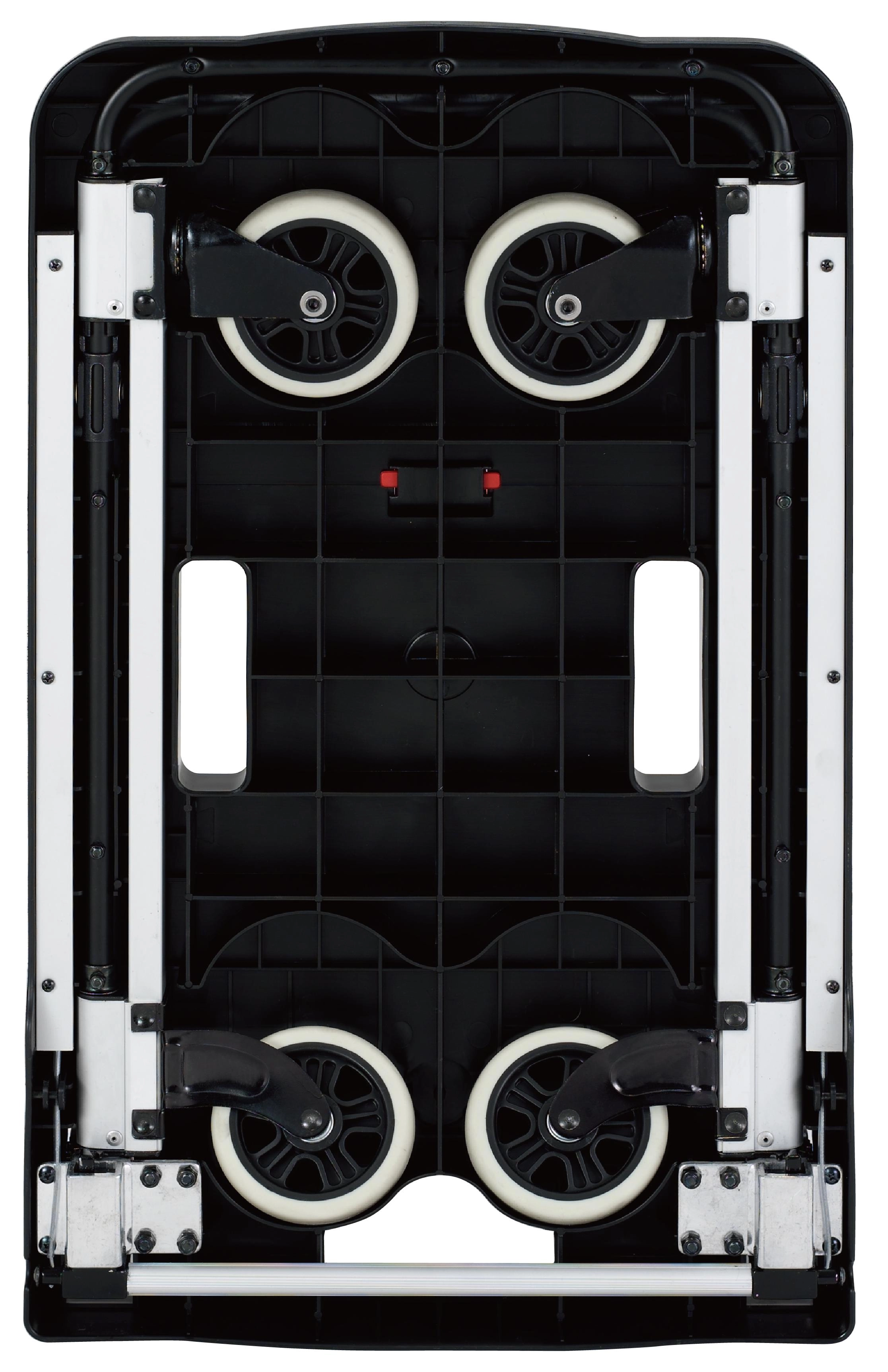 Den robuste platform med målene 68 × 41 cm giver rigelig plads til forskellige typer last. Bæreevnen på 137 kg garanterer sikker håndtering selv af tungere genstande, mens det sammenklappelige hjulsystem øger kompakthed og mobilitet.
