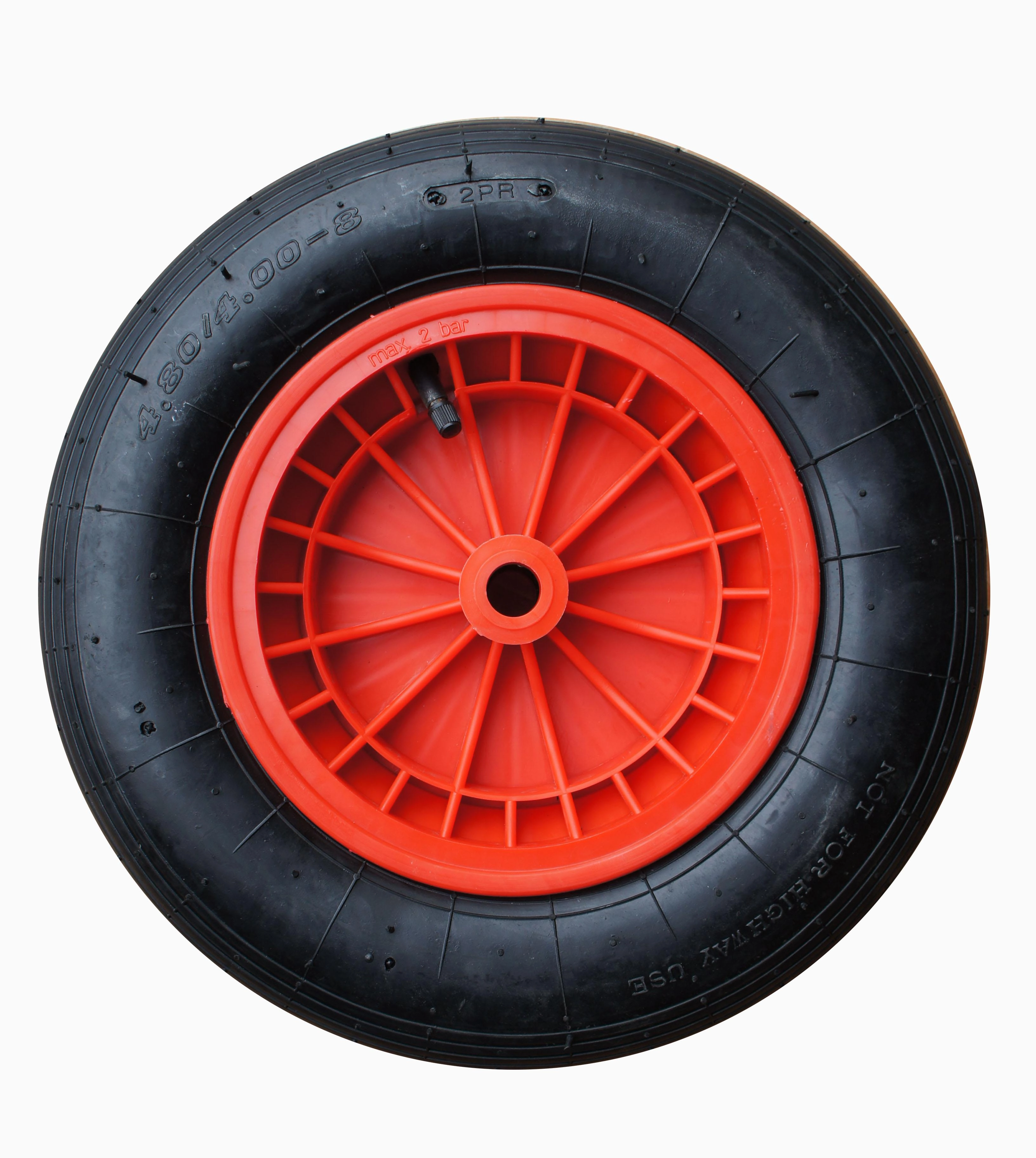 Velegnet til brug på byggepladsen, i haven og omkring huset. Den oppustelige dæktype øger komforten ved transport af last, beskytter trillebørskassen mod stød og forlænger dens samlede levetid.