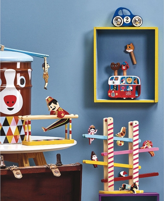 Den blå Vilac-bil er lavet af lakeret træ, hvilket sikrer holdbarhed og et elegant udseende. Den har metalhjul med gummibelægning, som giver en jævn og støjsvag kørsel. Takket være sin særlige akselkonstruktion kan bilen dreje til venstre og højre, hvilket giver mere dynamik i legen.