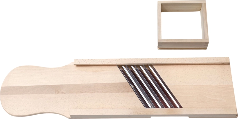 Traditionelt træskærer til kål med mål 92 × 23 cm og skuffe for nem føring af råvaren giver hurtig, præcis og ensartet snitning. Takket være robust naturtræ og skarpe knive i rustfrit stål (4 stk.) er den ideel til husholdninger og mindre drift. Nemt at bruge og let at vedligeholde gør den til en pålidelig hjælper til daglig forarbejdning af grøntsager.