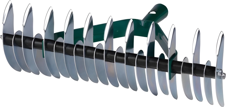 Modellen leveres uden skaft, så du kan vælge et håndtag efter dine præferencer for komfortabel brug. Regelmæssig luftning med disse river fremmer hurtigere regenerering af plænen efter vinteren, mindsker filtlag og understøtter jævn vækst.