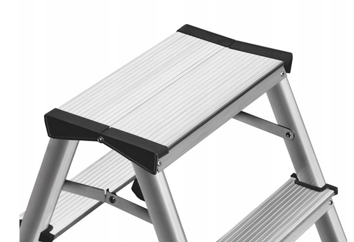 Riflede aluminiumstrin med plastdæksler og nittet fastgørelse sikrer et fast skrid uden at glide – selv ved længere tids stående arbejde.