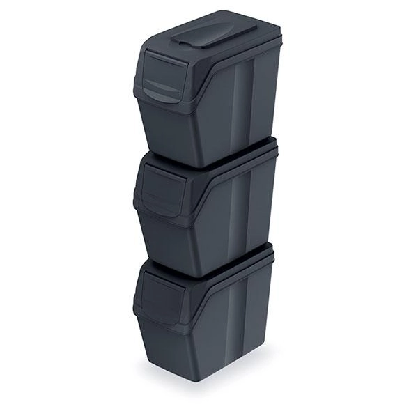 Sæt sorteringsspande Sortibox, 3×20 l, antracit