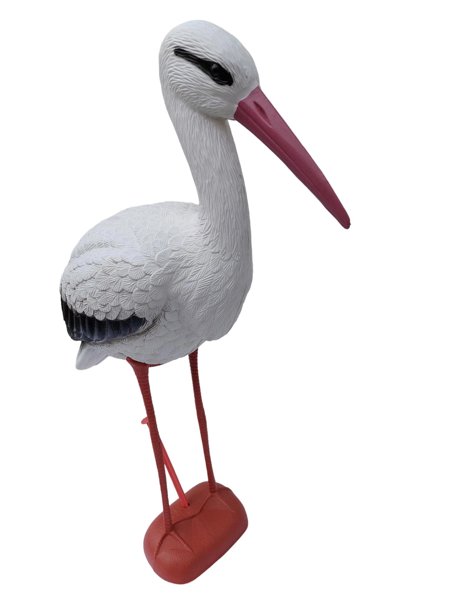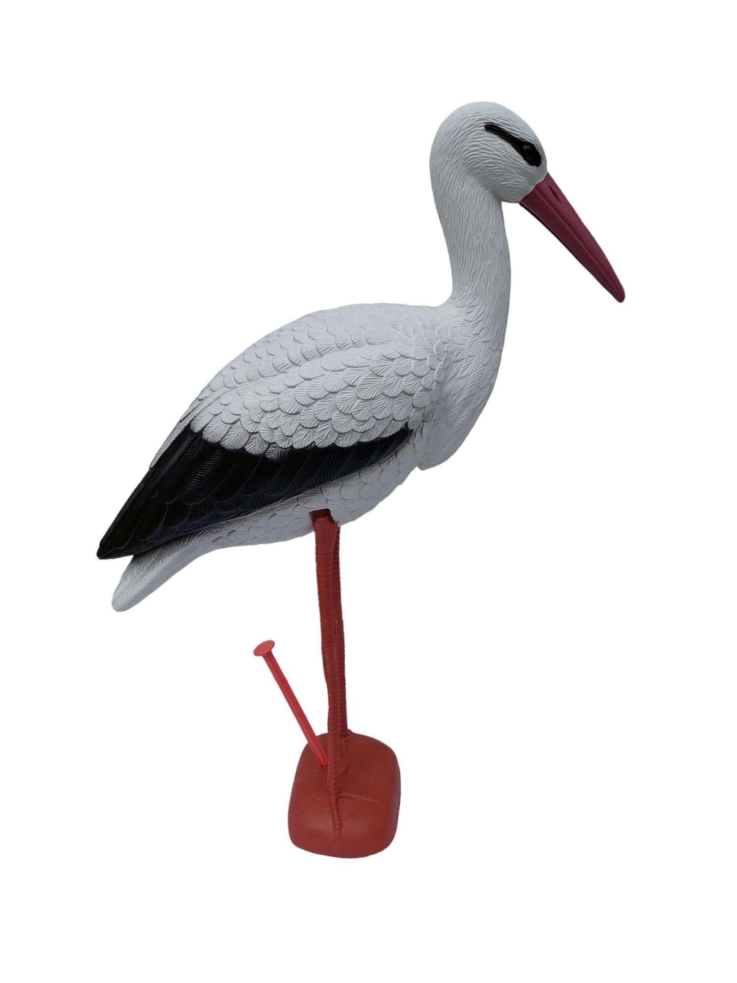 Denne elegante storkestatue giver haven et naturligt præg og fanger blikket med det samme. Realistiske former, det markante røde næb og den fine vingetekstur skaber indtrykket af en levende fugl, der smukt komplementerer havedamme, græsplæner og terrasser.