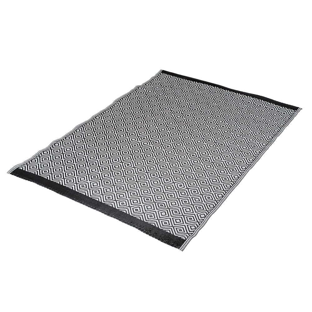 Nyd komforten udendørs med et praktisk, let og nemt transportabelt underlag i elegant sort‑hvid. Med det dobbeltsidede design skifter du nemt look efter humør, mens det vandafvisende materiale beskytter mod fugt og snavs.