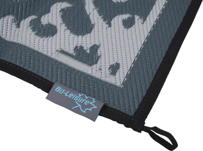 Måtten er vandafvisende, modstandsdygtig over for skimmel og udstyret med UV-stabilisering, så farverne ikke falmer selv ved hyppig sol. Den kan fastgøres i hjørneøjerne, og de forstærkede kanter øger holdbarheden. Pakken indeholder en praktisk taske, så du hurtigt kan folde, bære og opbevare måtten.
