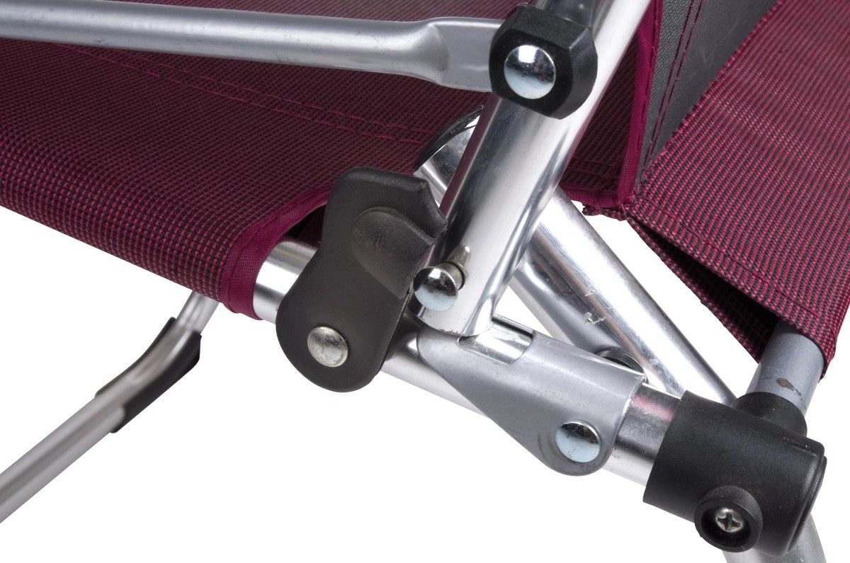 Med en vægt på kun 2,2 kg og mål på 65 × 55 × 7 cm sammenklappet er stolen nem at bære og opbevare. Maksimal belastning 100 kg, komfortabelt sæde på 44 × 43 cm og sædehøjde på 40 cm sikrer komfort selv ved længere tids siddning. Den elegante bordeauxfarve passer perfekt til dit outdoorudstyr.