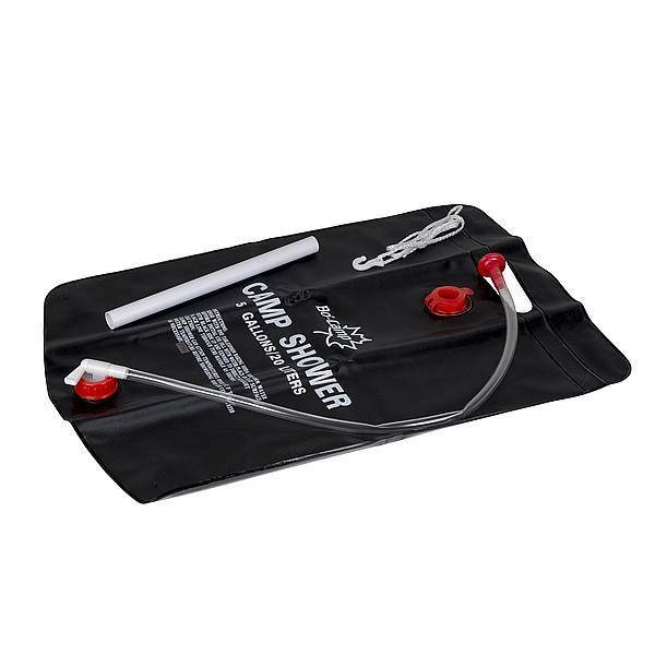 Med den fleksible slange, brusehoved og ventil kan du nemt justere vandflowet. Den stærke ophængsrem med krog gør det hurtigt at hænge den op på en gren, teltstang eller anden støtte. Den lette, sammenpakkelige konstruktion sparer plads i både rygsæk og bil.
