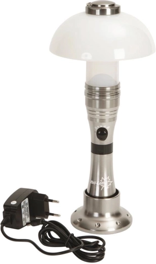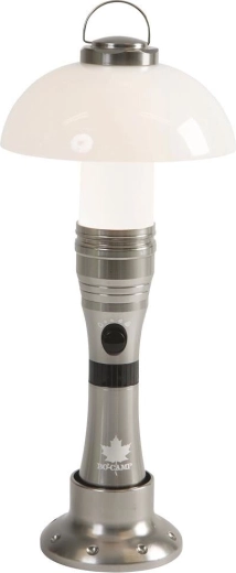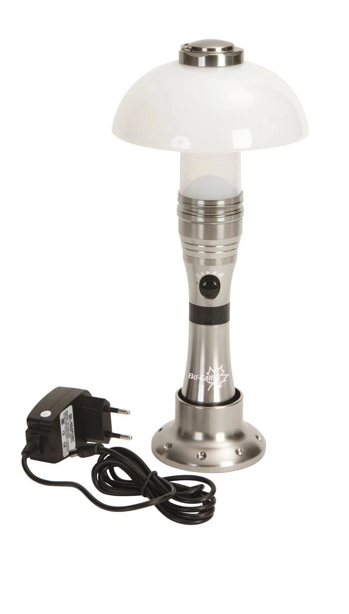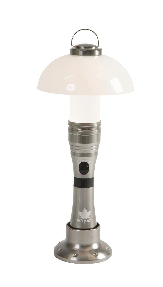 Bo-Camp POLARIS er et alsidigt lys til ethvert eventyr. Takket være det smarte design fungerer den som en håndholdt lommelygte til målrettet belysning og som en bordlampe med behageligt diffust lys. Den matte diffuser skaber en hyggelig atmosfære, og den trinfri dæmpning lader dig justere intensiteten præcist efter dine behov – fra klart arbejdslys til aftenhygge.