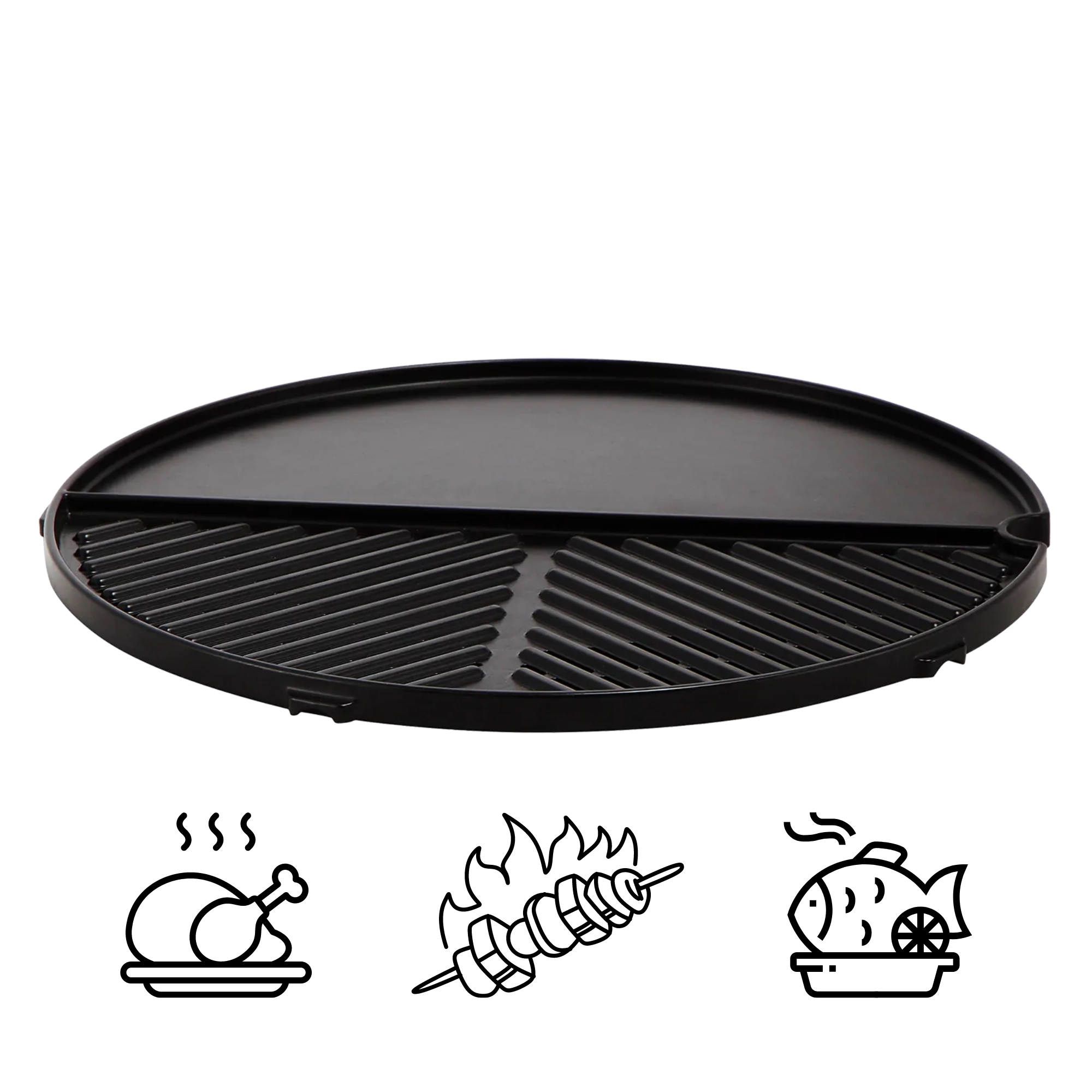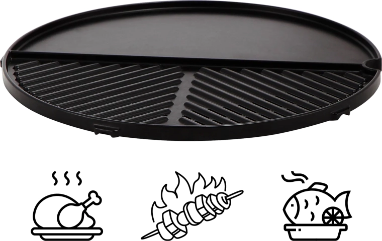 Glat plancha til æg og skaldyr, rillet del til kød og grøntsager – tilbered forskellige retter på én gang uden kompromiser.