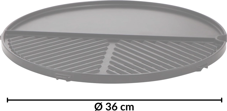 Med en diameter på 36 cm får du rigelig plads til at tilberede flere retter samtidigt. Det lette aluminiumsmateriale varmes hurtigt op og fordeler varmen jævnt over hele fladen, så du opnår konsistente resultater ved hver grillning.