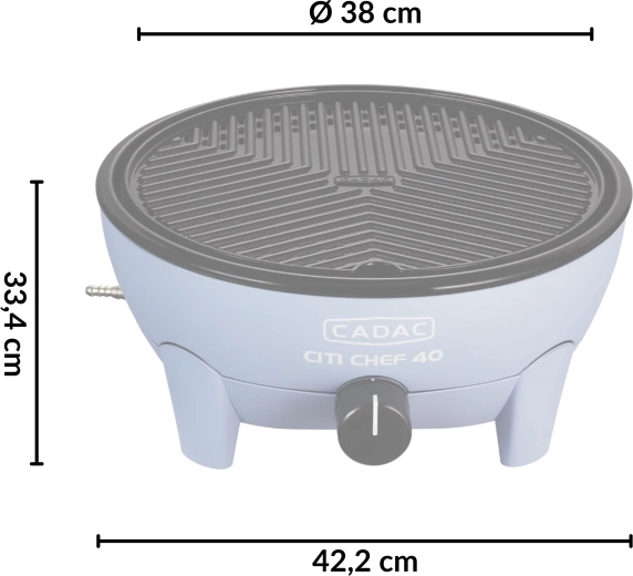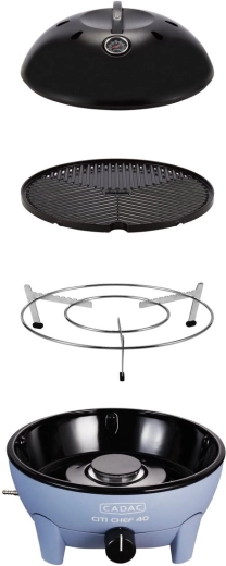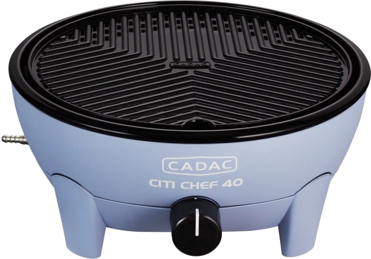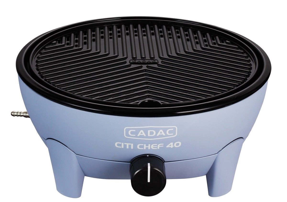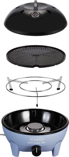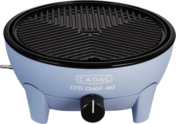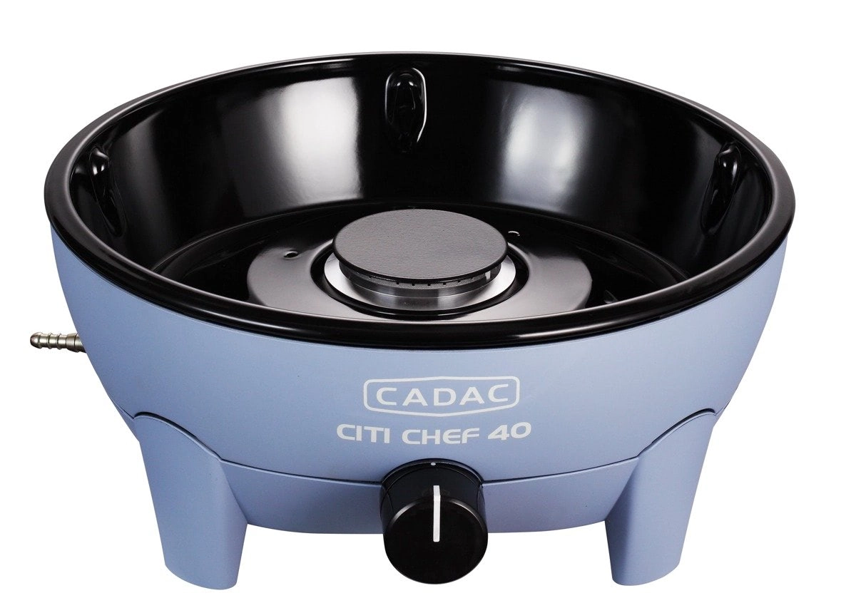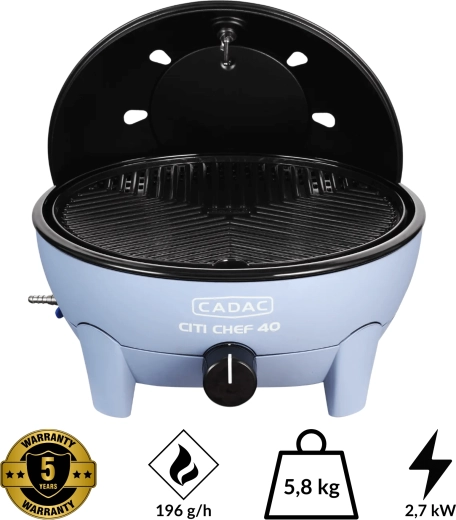 Den bærbare gasbordgrill CADAC Citi Chef 40 udmærker sig ved en stabil konstruktion, trinløs effektregulering og et praktisk låg med kroge, som reducerer fedtstænk og samtidig fungerer som vindbeskyttelse. Takket være de kompakte mål og den medfølgende transporttaske kan du nemt tage den med overalt.