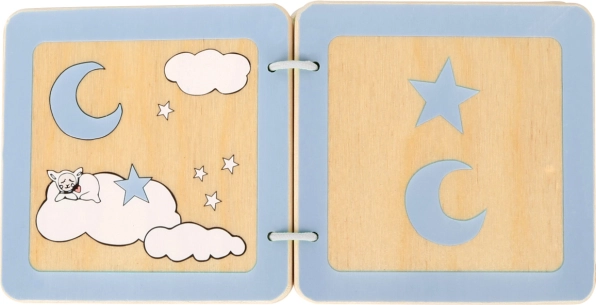 Træbog LOTTA til børn fra 12 måneder. Spytbestandig, nem at rengøre, lærer de første former og udvikler sanseopfattelse. Kompakt og sikker.
