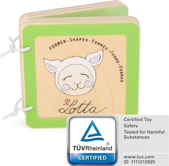 Træbogen LOTTA er designet specielt til tumlinger fra 12 måneder. Den hjælper børn med på legende vis at lære grundlæggende former og udvikle syns- og følesans. De holdbare træsid er med solid ringbinding tåler daglig brug og er lette at holde rene.