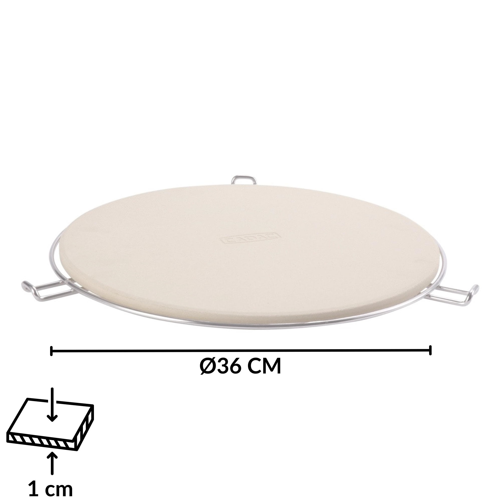 Pizzastenen fra CADAC med en diameter på 36 cm er det ideelle tilbehør til elskere af hjemmelavet pizza. Takket være en tykkelse på 1 cm holder og fordeler den varmen fremragende, så du opnår sprød og jævnt gennemstegt dej uden at brænde på. Brug den i den elektriske ovn eller på grillen – uanset om det er gas eller trækul – og løft nemt din grillning til et højere niveau.