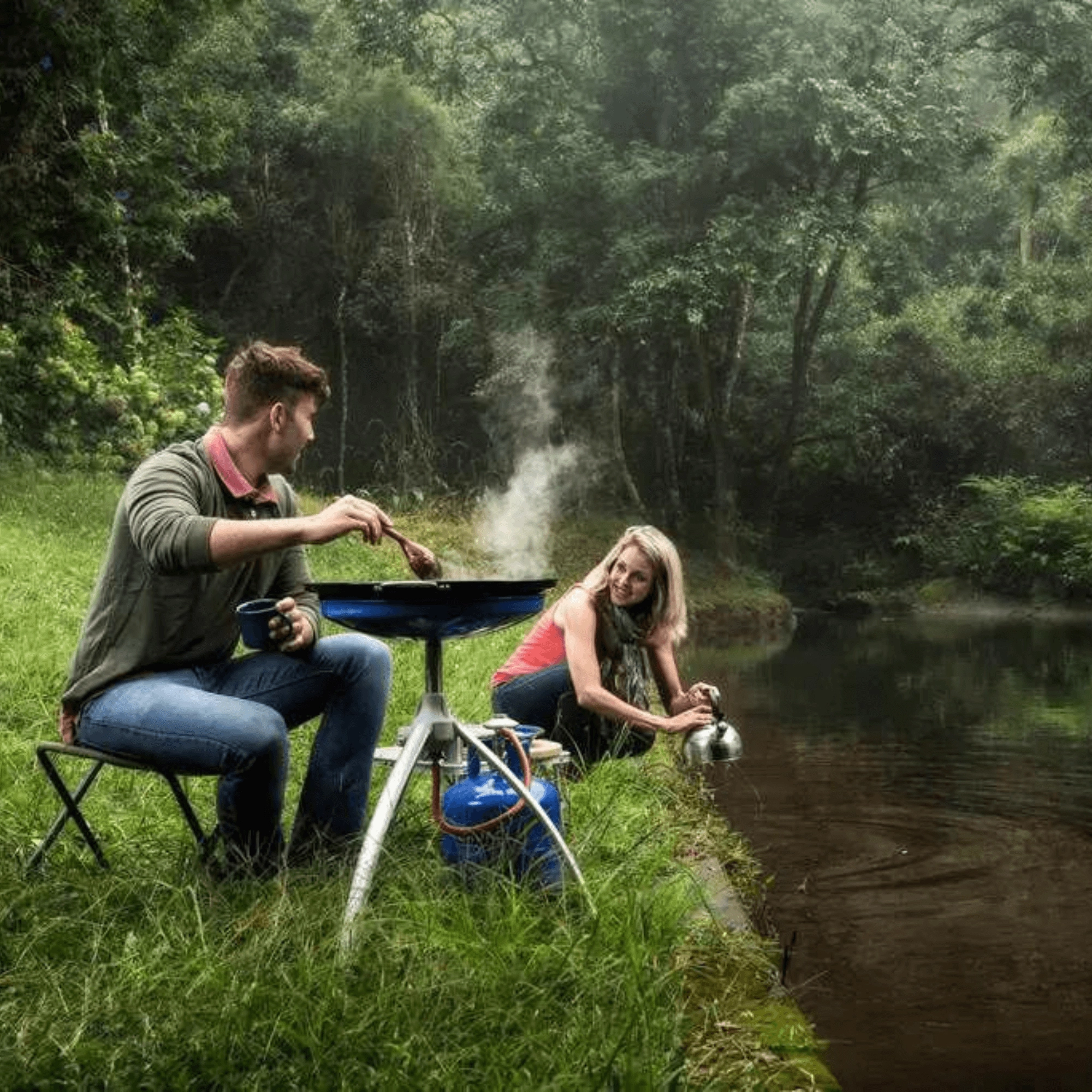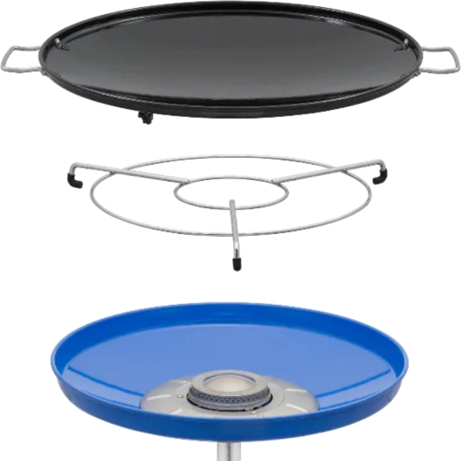 - Glat/riflet plade, grydeholder, sammenklappelige ben, krydderihylde, transporttaske