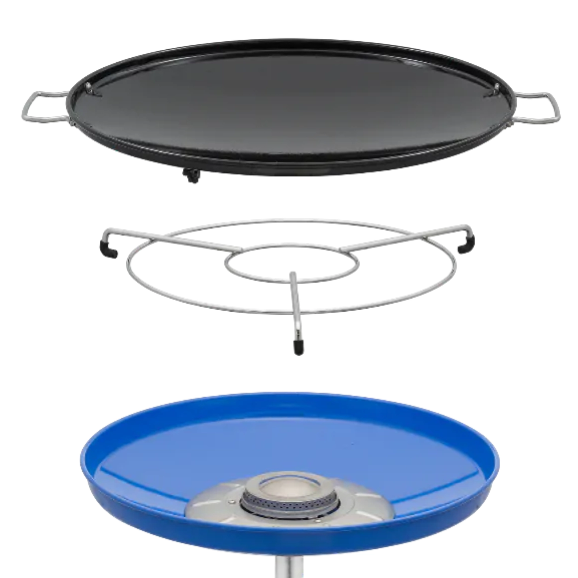 Glat/riflet plade til stegning og grillning samt metalholder til gryder op til Ø 30 cm – ét system, utallige madlavningsmuligheder.