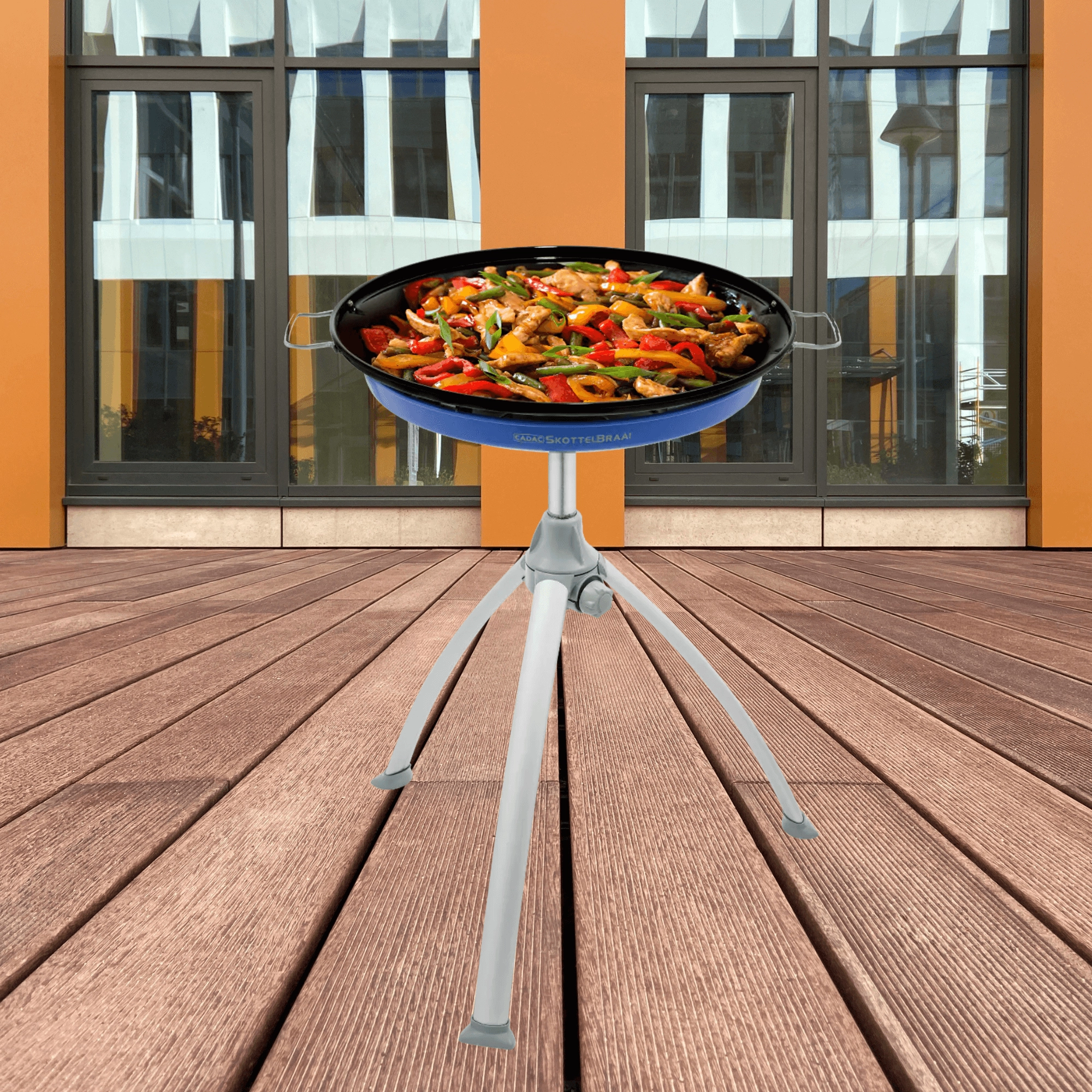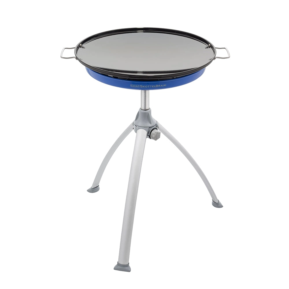 Den alsidige og bærbare gasgrill CADAC Skottel Braai med en diameter på 48 cm er ideel til camping, have og udflugter. Den tilbyder stor stegeflade, stabil trefod, lav vægt under 6 kg og to udskiftelige plader – glat/riflet plade samt grydeholder. Med en effekt på 3 kW og jævn varmefordeling tilbereder du let morgenmad, paella, asiatiske retter og saftige bøffer.