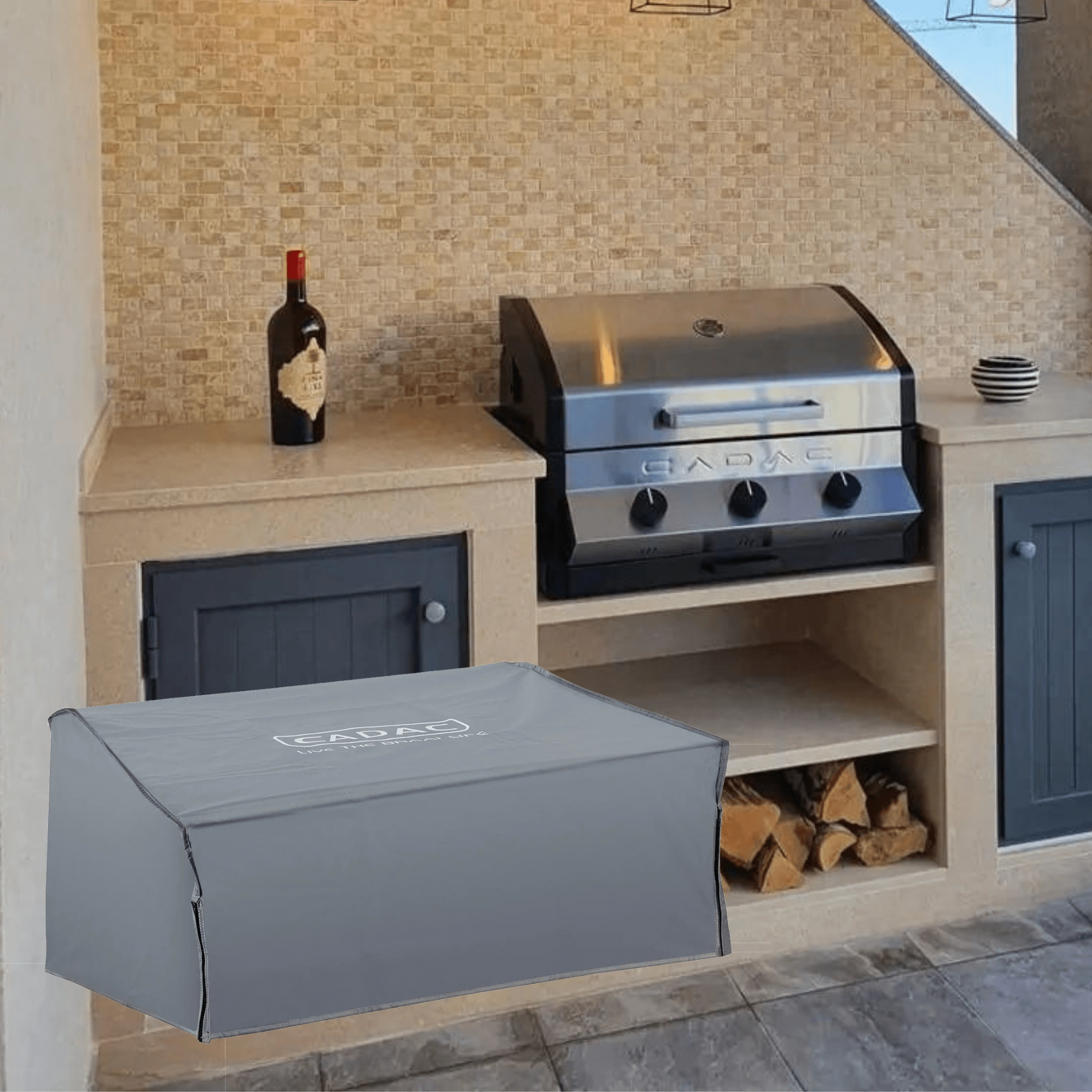 Overtrækket er skræddersyet til den indbyggede CADAC MERIDIAN 3 gasgrill – dækker alle udsatte dele og forlænger grillens levetid.
