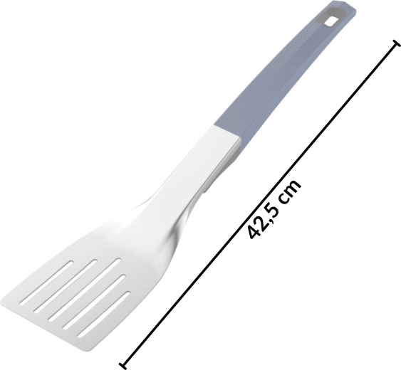 Denne robuste CADAC grillspade er designet til komfortabel og sikker grillning og stegning. Mat rustfrit stål giver lang holdbarhed og nem vedligeholdelse, mens det lange håndtag med skridsikkert silikone giver fremragende kontrol og varmebeskyttelse.