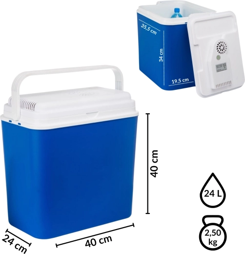 Kompakt elektrisk køleboks til bil med et volumen på 24 l til strøm fra 12 V cigarettænderen er ideel til rejser, camping og picnics. Takket være det termoelektriske Peltier-element holder den pålideligt en lav temperatur uden skadelige kemikalier, og dens kvalitetsisolering bevarer indholdet koldt, selv efter at strømmen er afbrudt. Et praktisk sammenklappeligt håndtag, robust konstruktion og nem vedligeholdelse gør den til en fantastisk makker på ethvert eventyr.