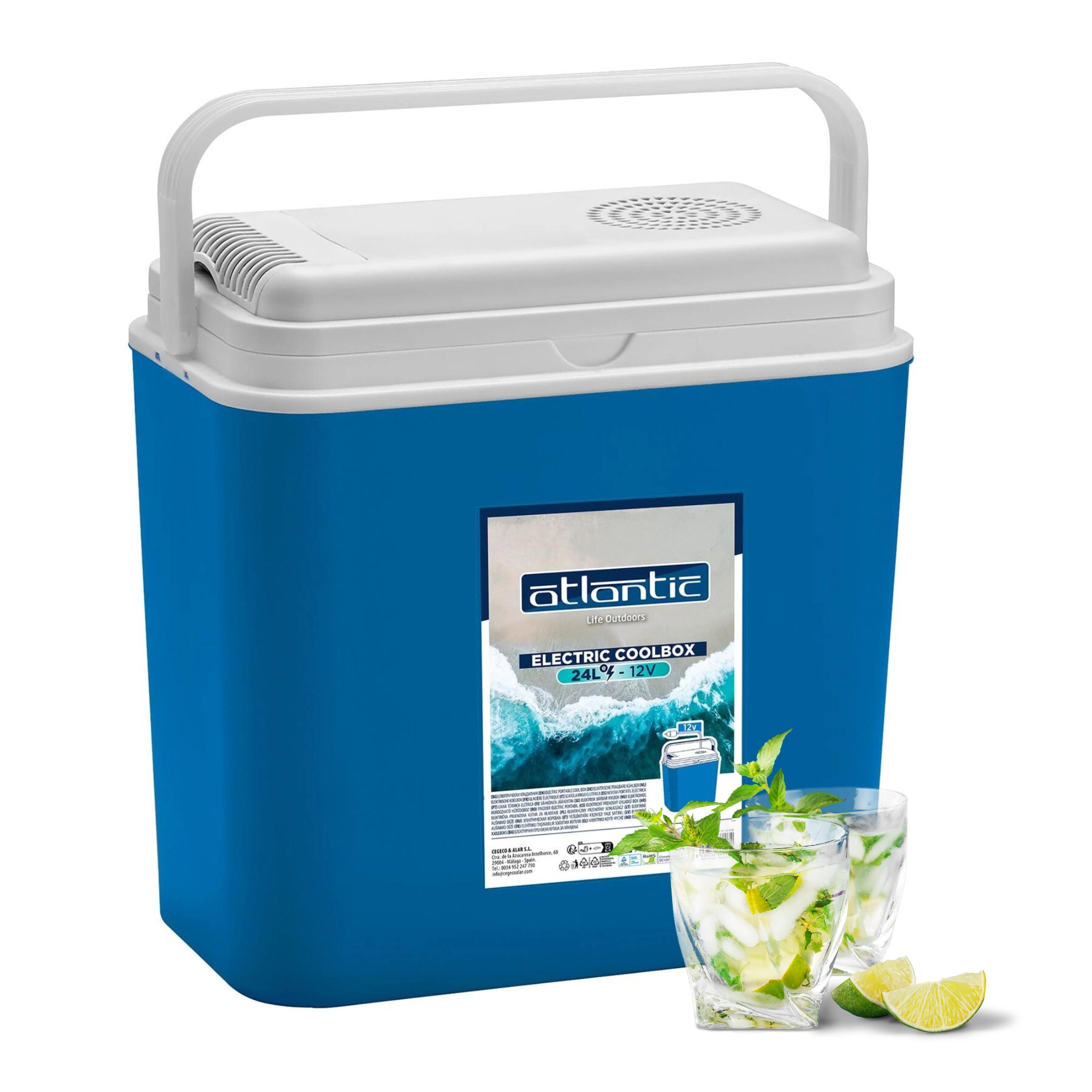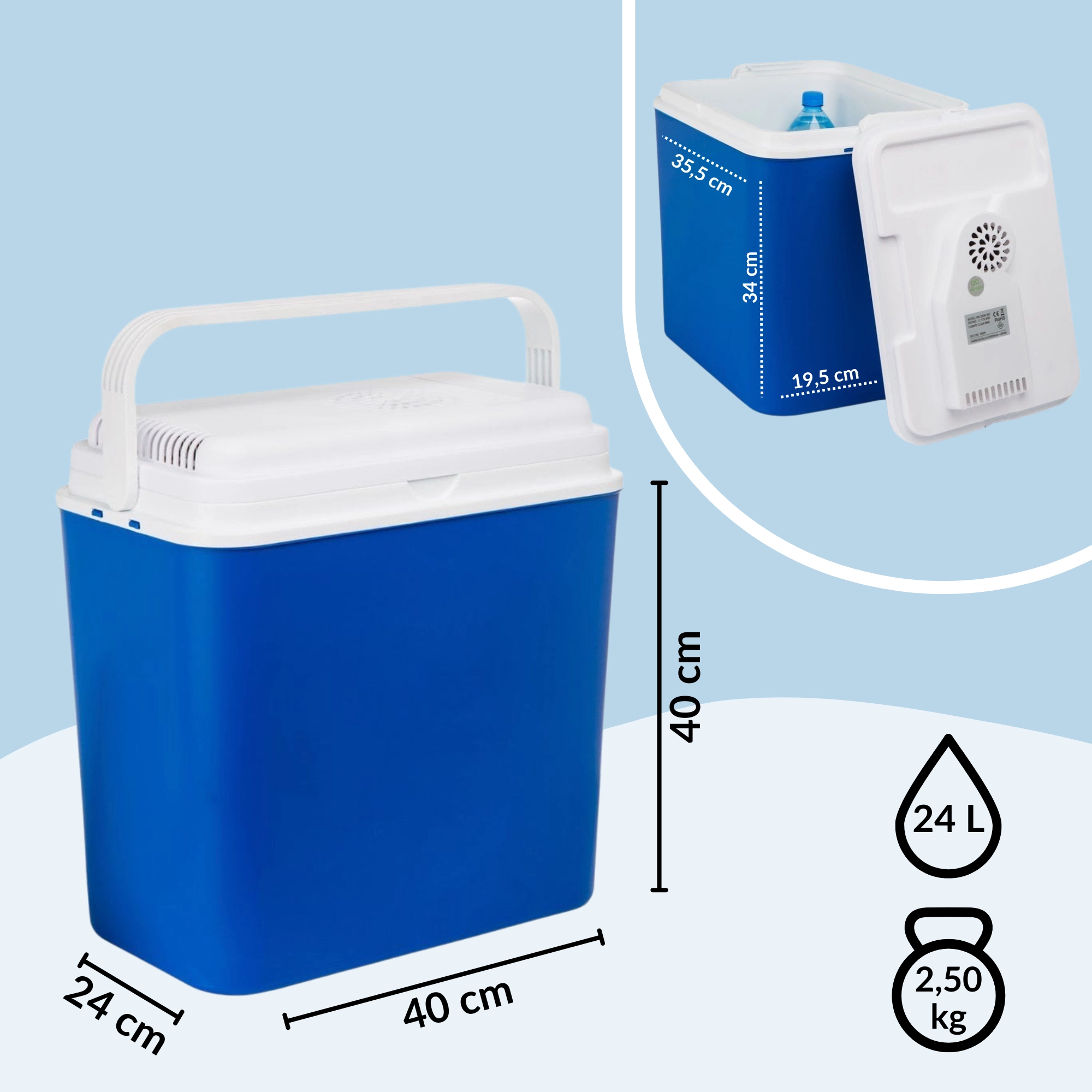 Det smarte design med integreret opbevaringsplads til kabel og sammenklappeligt håndtag gør transport og opbevaring nemt. Det indvendige volumen på 24 l rummer bekvemt drikkevarer, snacks og små fødevarer til hele holdet.
