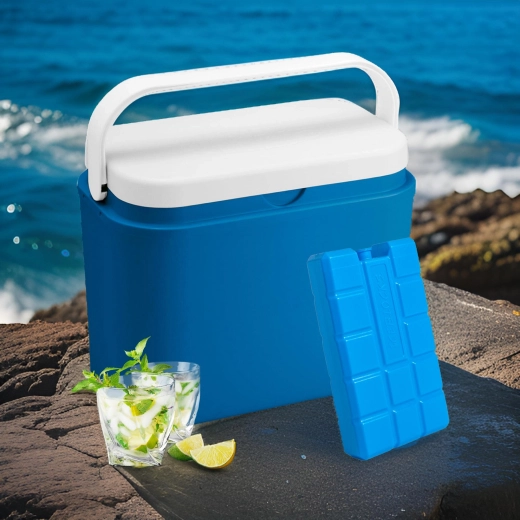 Det praktiske KAMAI-køleelement med en kapacitet på 750 ml holder dine madvarer og drikkevarer friske i længere tid på udflugter, picnics og ved vandet. Frys det ned på forhånd og læg det i køletaske eller -boks. Takket være slidstærk polypropylen, sikker kølevæske og kompakte mål passer det nemt i de fleste køletasker og kølebokse. Produktet er godkendt til kontakt med fødevarer og egner sig til gentagen brug.