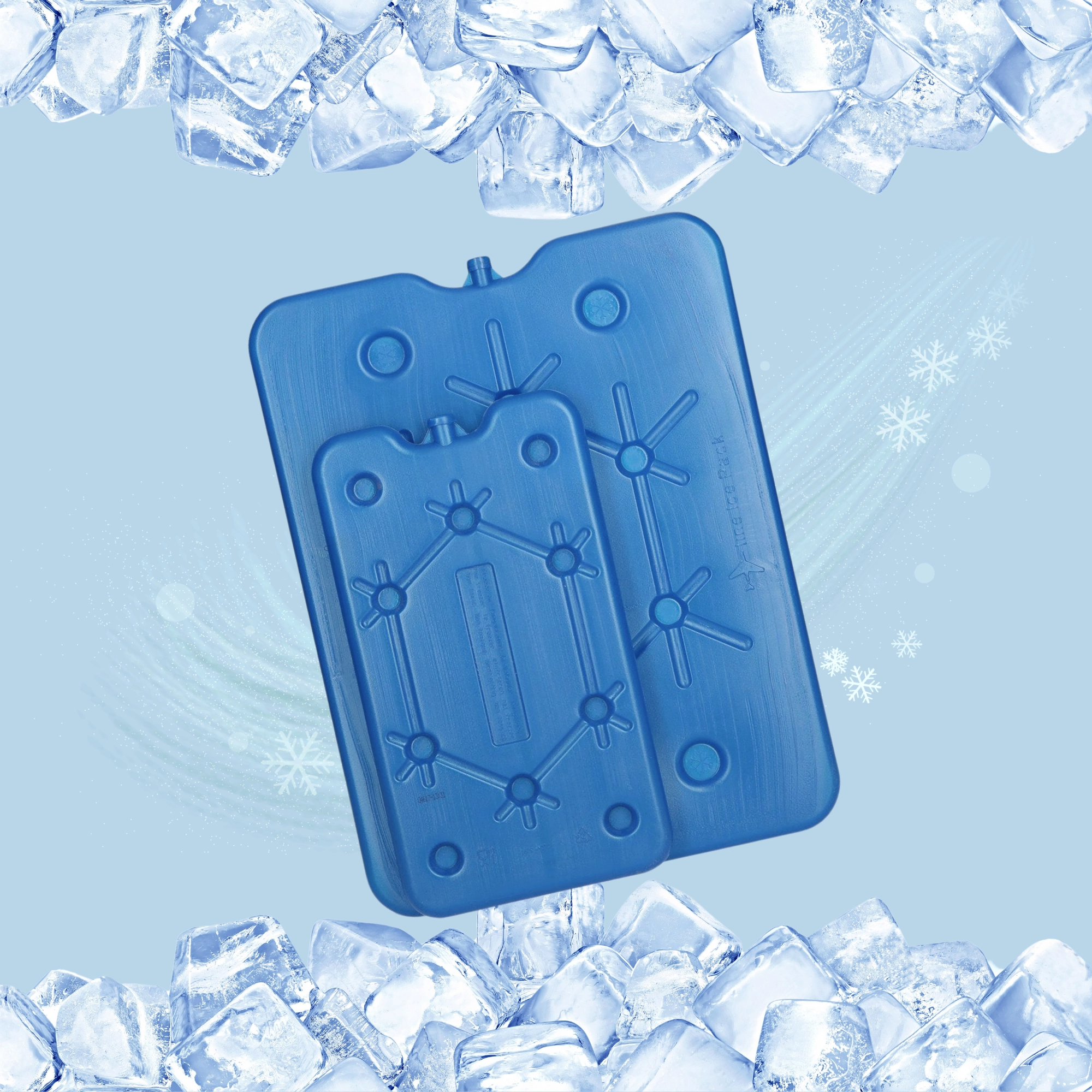 Den flade form passer nemt mellem madvarer og drikke uden at optage værdifuld plads i køleboksen.