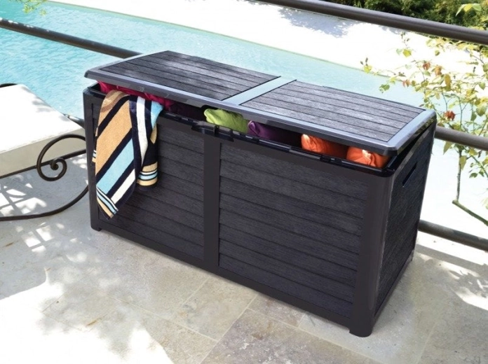 Konstruktionen af robust plast beskytter indholdet mod regn og fugt, så puder, legetøj og værktøj forbliver tørre og rene.