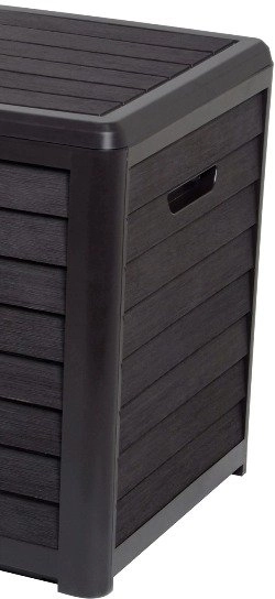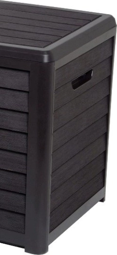 Designet med effekt af naturtræ giver dit uderum et moderne udtryk, mens sikkerhedsløsning mod utilsigtet klemmelåg øger komforten i daglig brug. Integrerede håndtag og nem montering sikrer, at boksen hurtigt sættes op og let flyttes derhen, hvor der er brug for den.