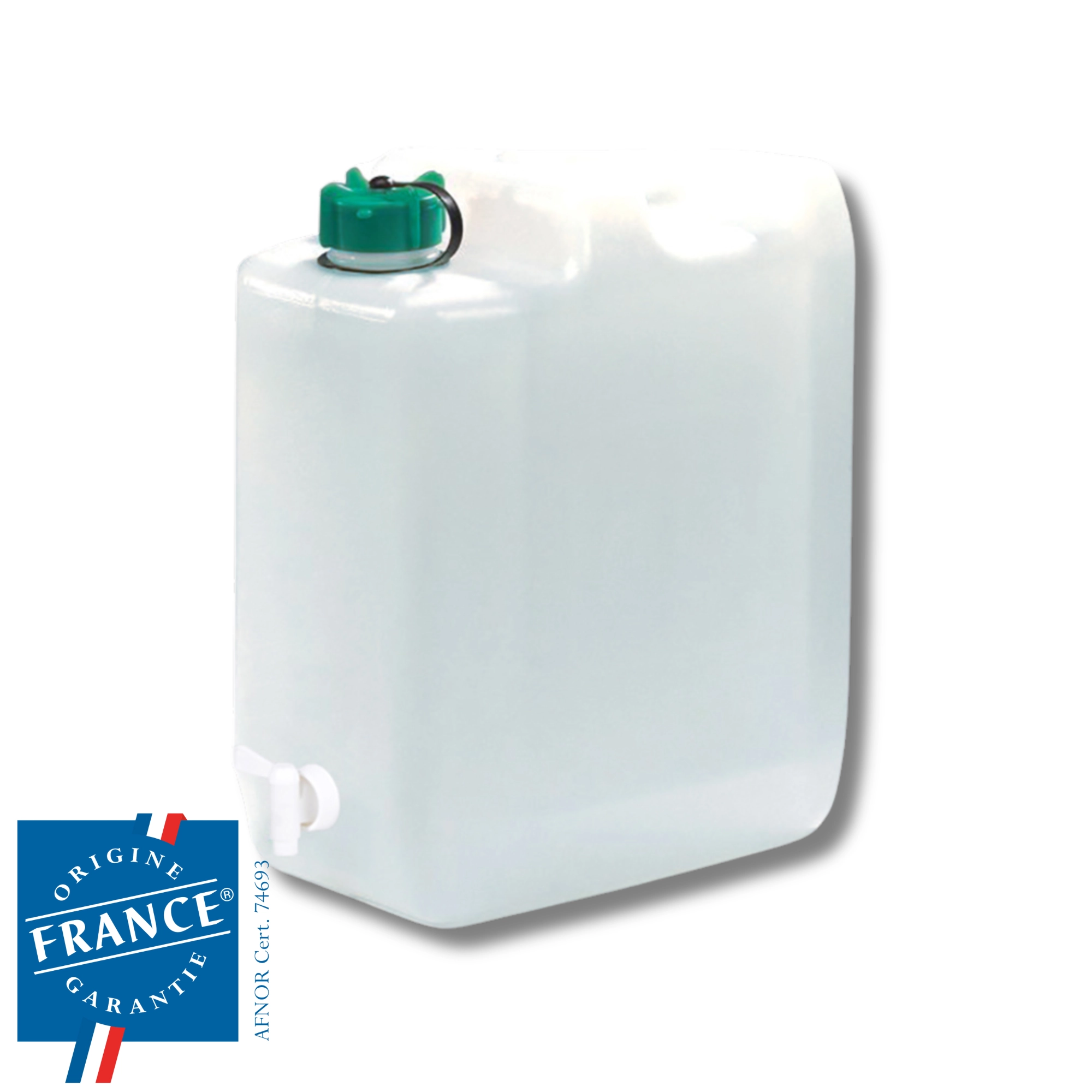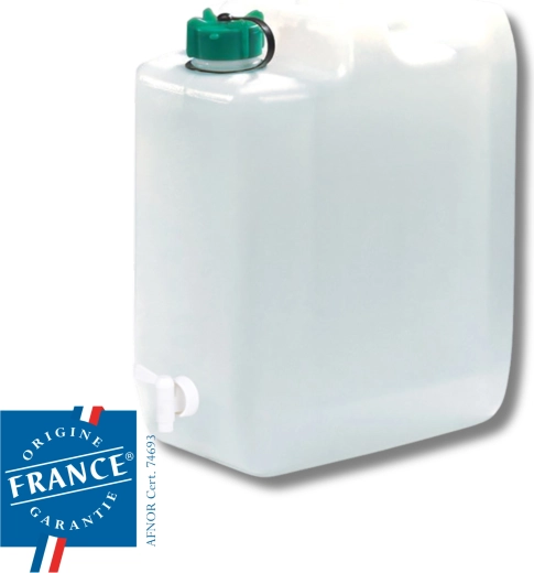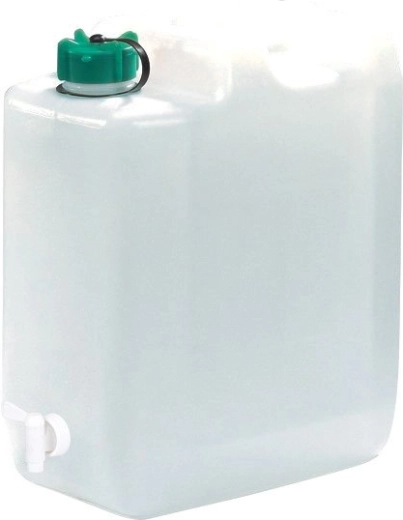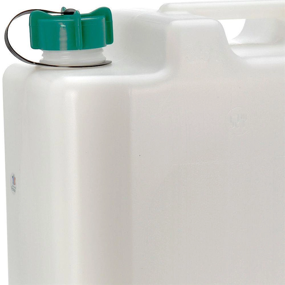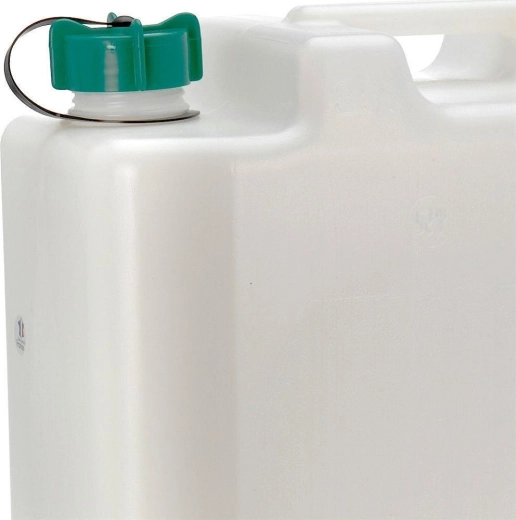 Kompakt form, solidt håndtag og sikker skruehætte gør dunken til en perfekt makker i campingvogn, telt og bjerg- eller sommerhus.