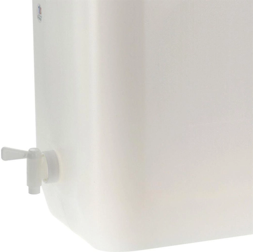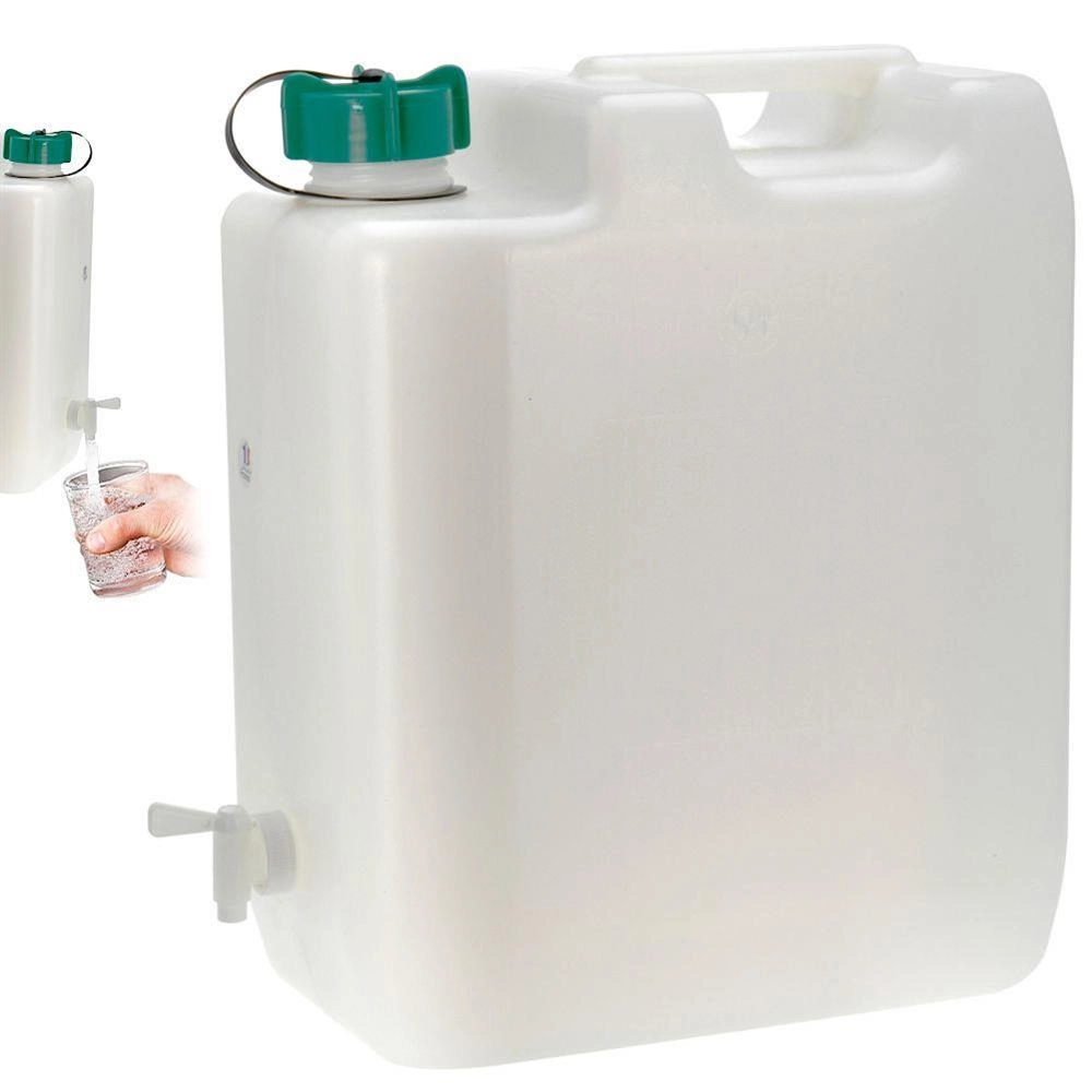 Praktisk vanddunk med et volumen på 35 l, fast bærehåndtag for nem transport og integreret hane til præcis dosering. Velegnet til rejser, camping og hjemmebrug. Fremstillet af materiale egnet til kontakt med fødevarer.