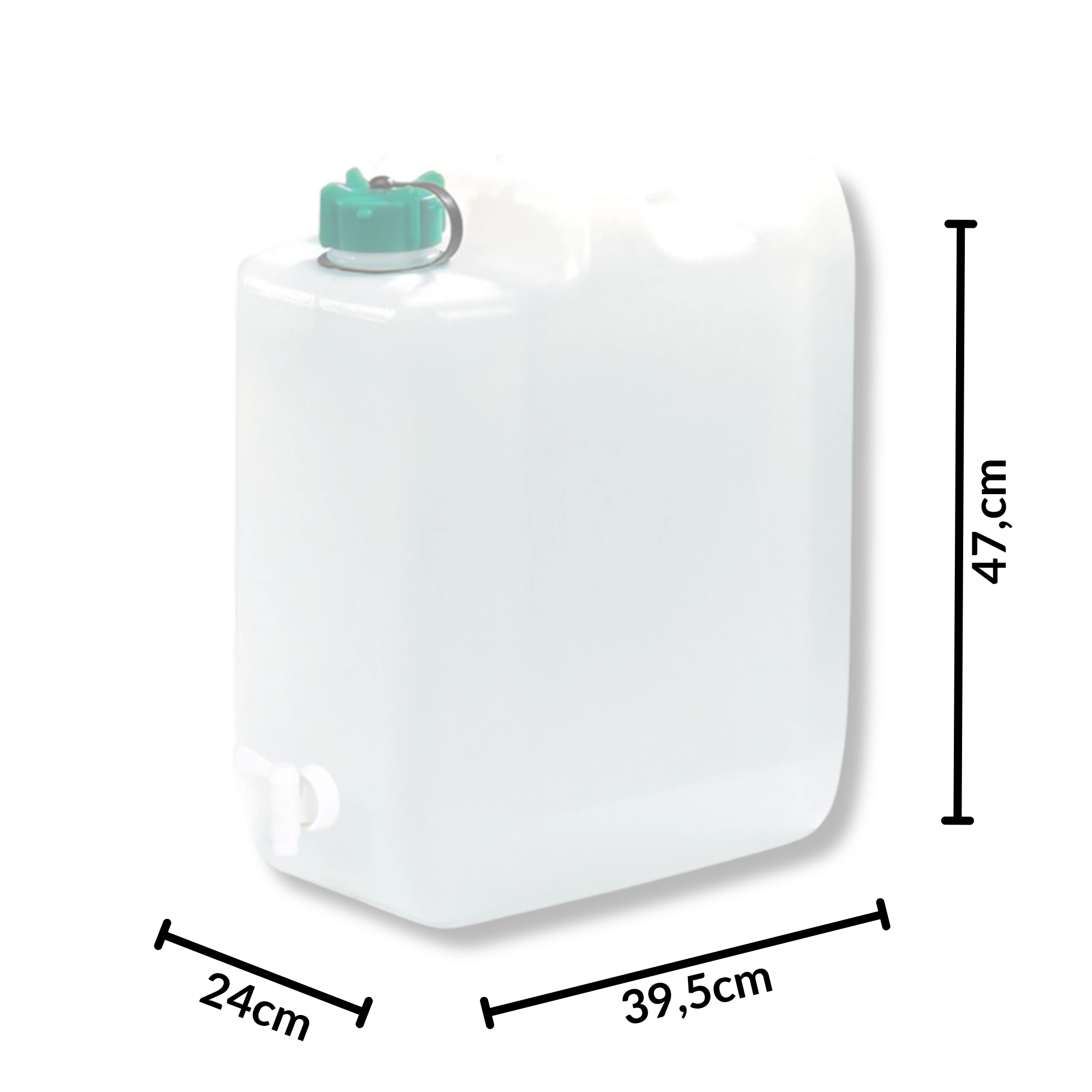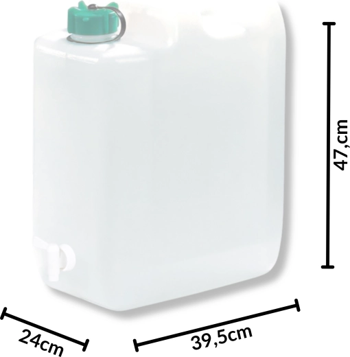 Den rummelige KAMAI-vanddunk med en kapacitet på 35 liter er en pålidelig løsning til sikker opbevaring og transport af drikkevand. Det brede påfyldningshals med skruehætte gør den nem at fylde og rengøre, og den integrerede hane muliggør bekvem og økonomisk dosering uden spild.