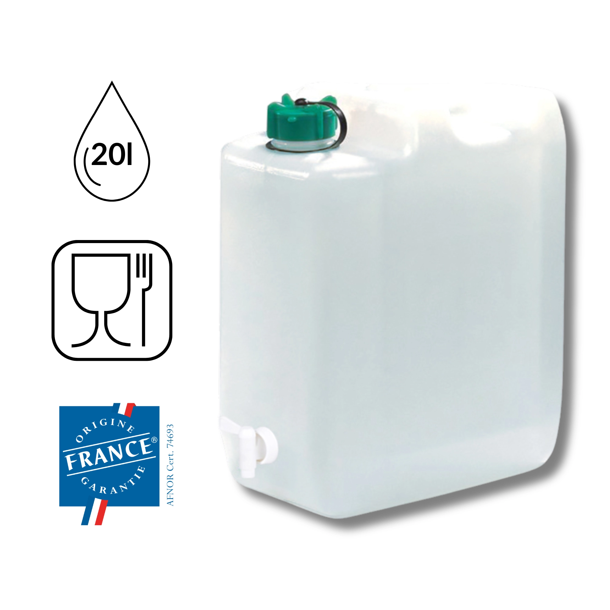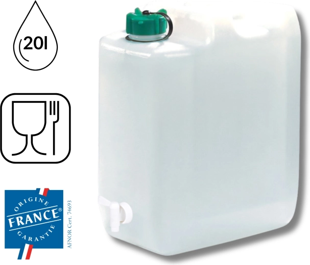 Fremstillet af materiale egnet til kontakt med fødevarer, perfekt til opbevaring af drikkevand til hele familien.