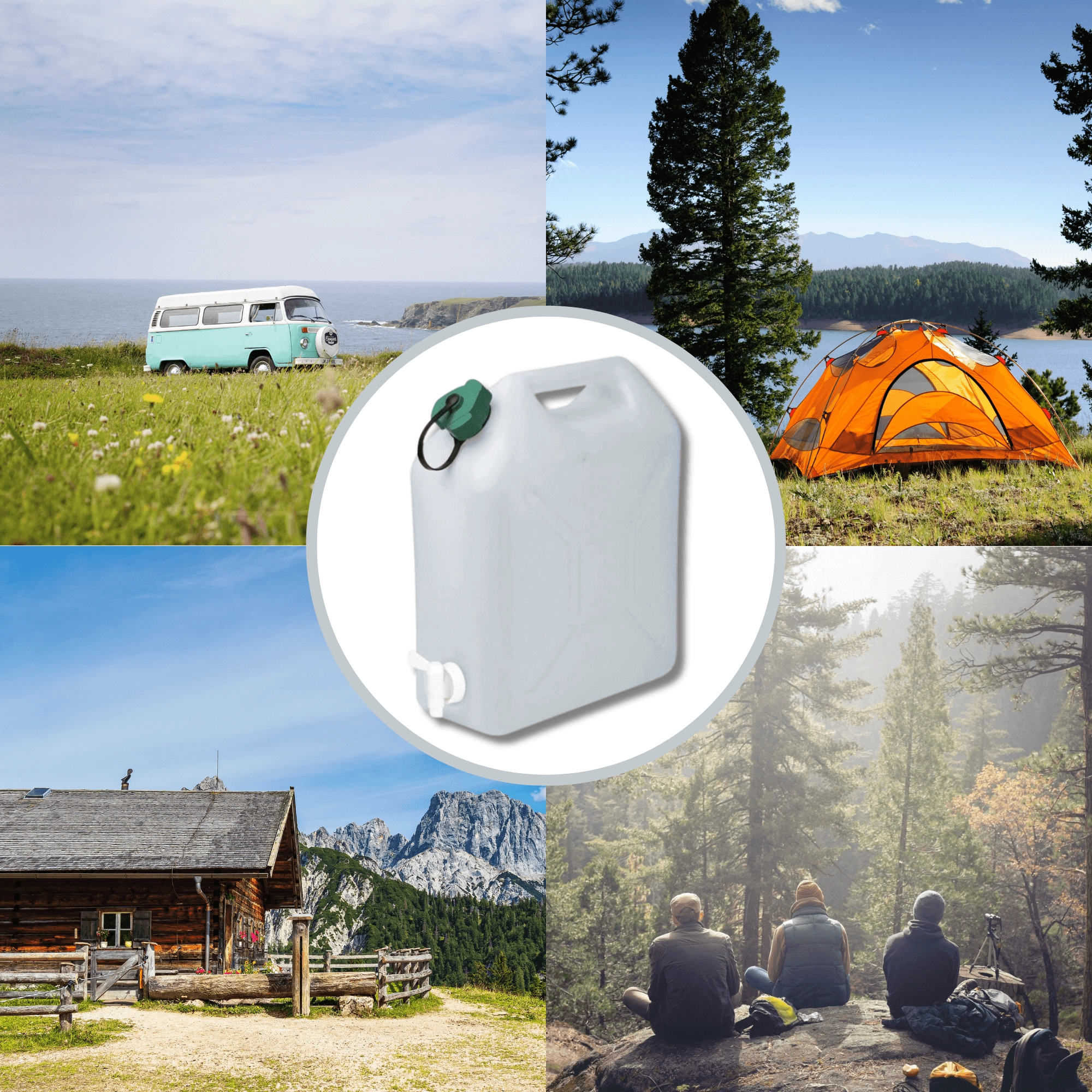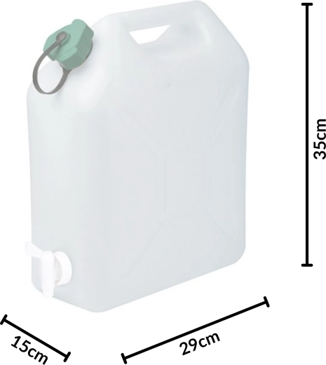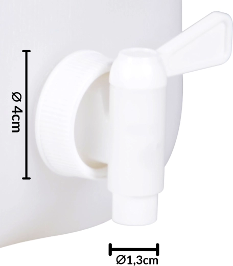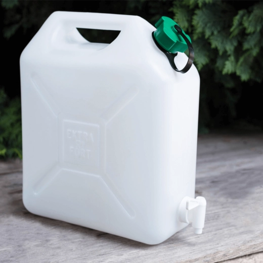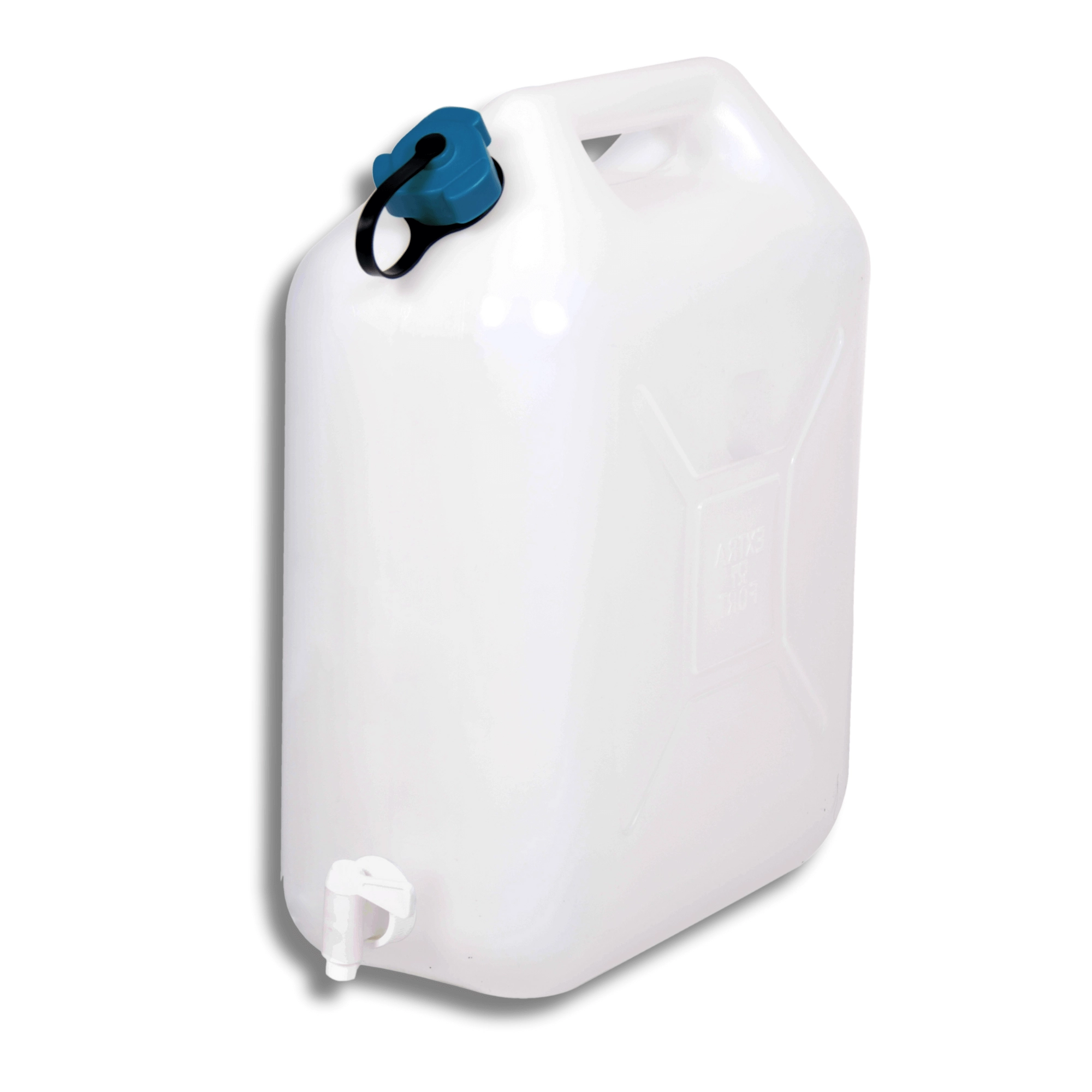 Den integrerede hane muliggør præcis dosering uden spild. Den brede påfyldningsåbning med skruelåg sikrer nem påfyldning og rengøring. Et perfekt valg til camping, rejser, picnic, værkstedet og håndvask, hvor der ikke er adgang til vand.