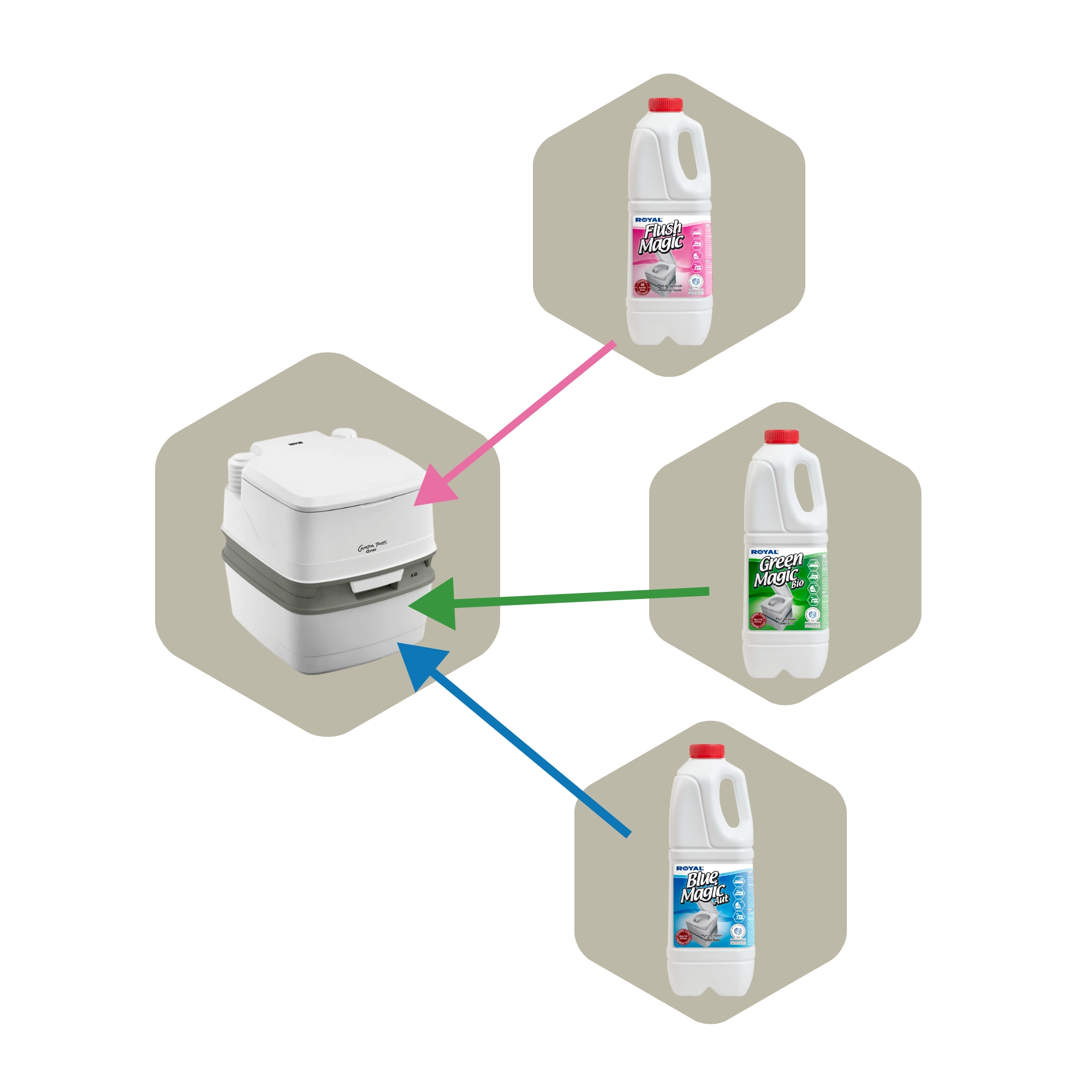 Formlen er miljøvenlig, fuldt biologisk nedbrydelig og efterlader en behagelig duft af fyr, som effektivt maskerer indholdet i toilettet. Velegnet til transportable, kassette- og vakuumtoiletter samt sanitære systemer i fly, tog, busser, yachts og autocampere.