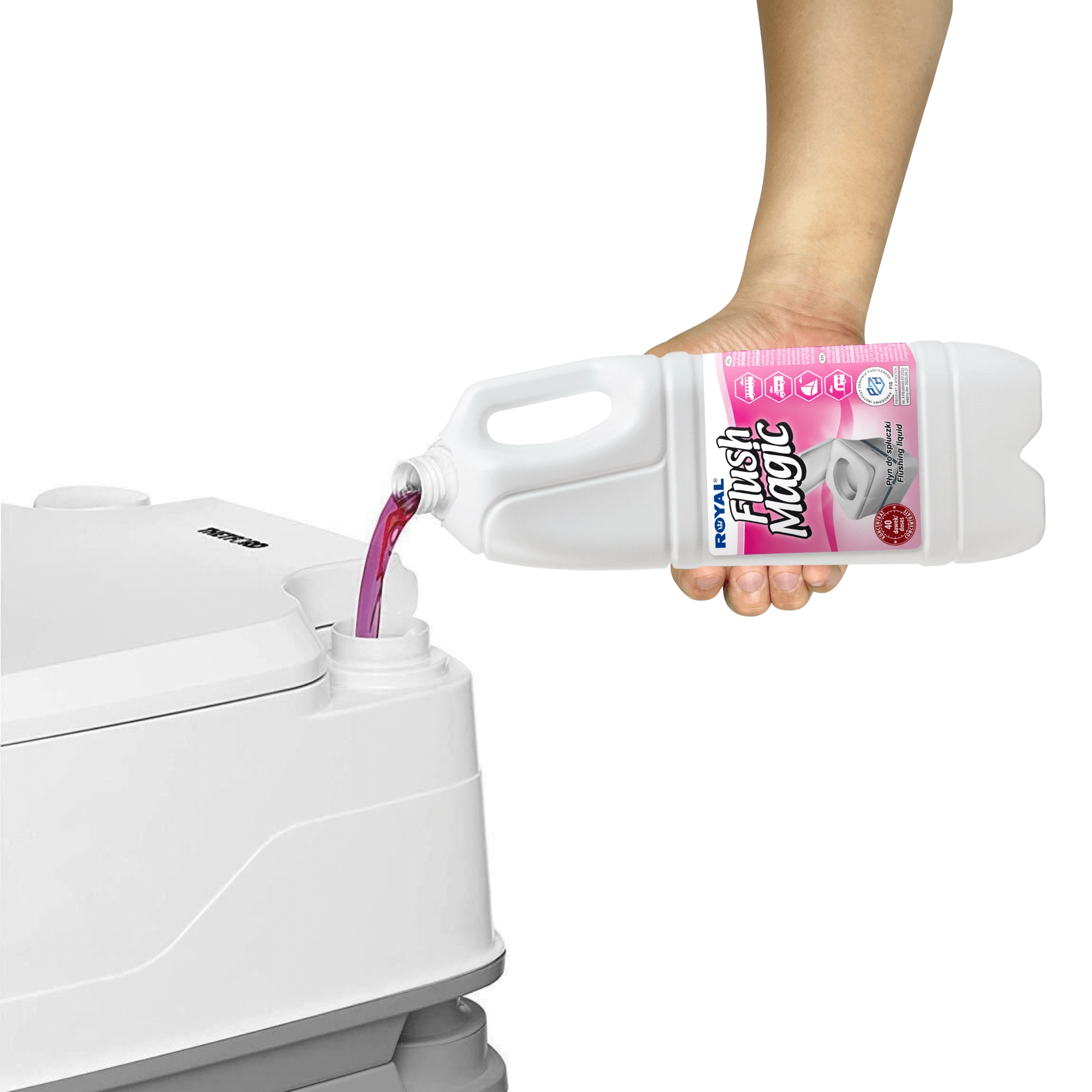 Meget effektiv koncentrat til kemiske og transportable toiletter til camping, campingvogne, både, busser eller byggepladser. Produktet fremskynder nedbrydning af afføring og toiletpapir, reducerer dannelsen af gasser og neutraliserer lugt. Det er biologisk nedbrydeligt og efterlader en langvarig frisk duft af fyr.
