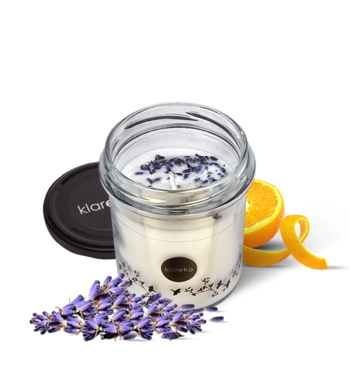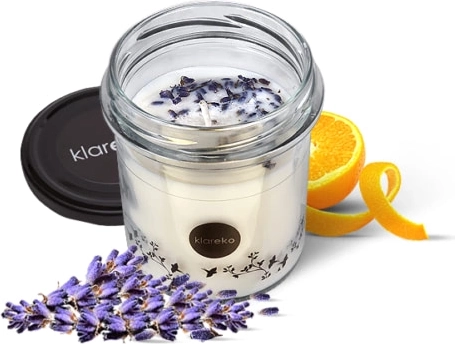 Nyd ro og harmoni med det naturlige duftlys KLAREKO med duft af lavendel, håndlavet af naturlig sojavoks og beriget med æteriske olier. Det giver op til 22 timers brændetid, er miljøvenligt, vegansk og sikkert for helbred og miljø – uden røg og toksiner.