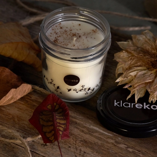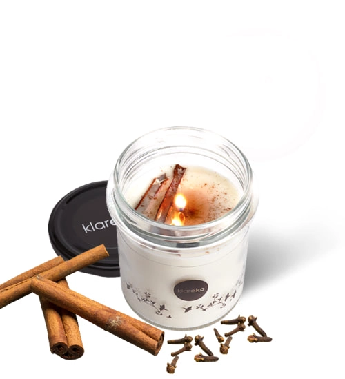 Nyd en varm atmosfære med KLAREKO naturligt duftlys af sojavoks med duft af kanel og nellike. Håndlavet, miljøvenligt, vegansk og non‑toxisk lys, der brænder i cirka 22 timer, danner hverken røg eller toksiner og fylder hjemmet med en behagelig, langvarig duft.