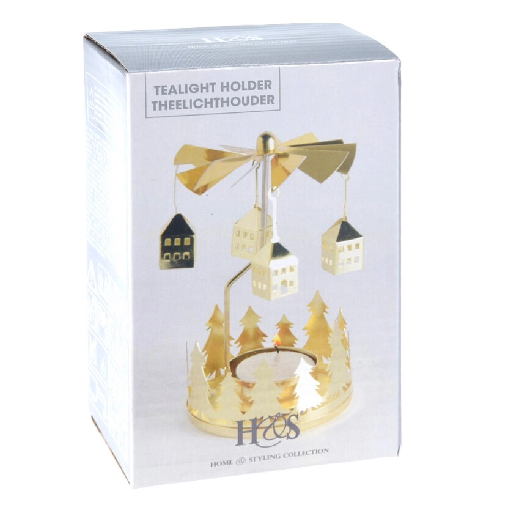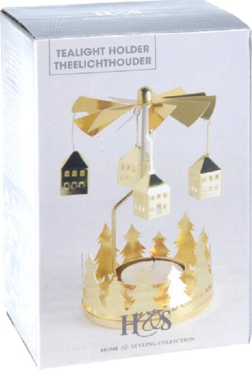 Pynt hjemmet med en fortryllende roterende karusel, der takket være varmen fra fyrfadslyset drejer af sig selv og fylder rummet med leg af lys og skygger. Den gyldne finish virker elegant og passer perfekt til både moderne og klassiske interiører.