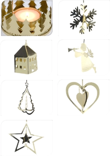 Elegant gylden englekarusel forvandler hver aften til en rolig festlig stund. Varmen fra fyrfadslyset sætter de fine motiver i bevægelse og skaber en magisk atmosfære med glitrende lys. En stilfuld dekoration i gyldent metal til bordet, hylden eller sidebordet.