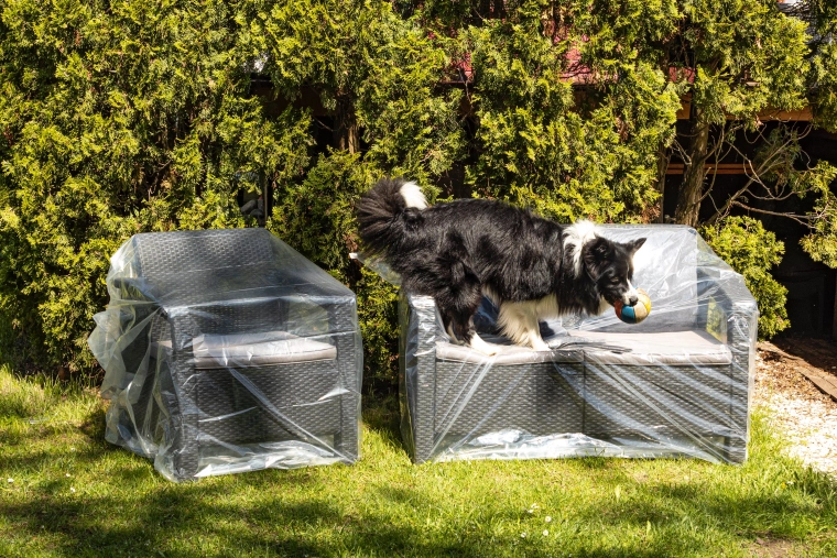 Robust polyethylenfolie med en tykkelse på 50 mikron beskytter pålideligt sofaen mod vand, regn og snavs og er langt mere modstandsdygtig end almindelig malerfolie.
